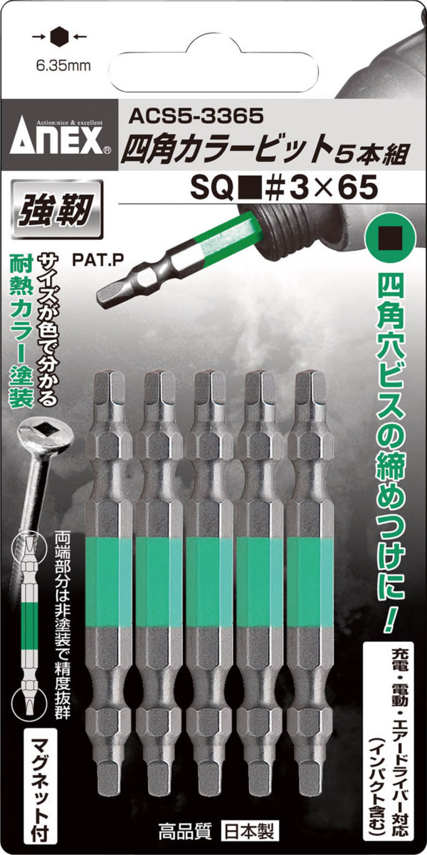 | 兼古製作所 Anex アネックス カラー四角(スクエアー)ビット5本 #3X65 ACS5-3365 |