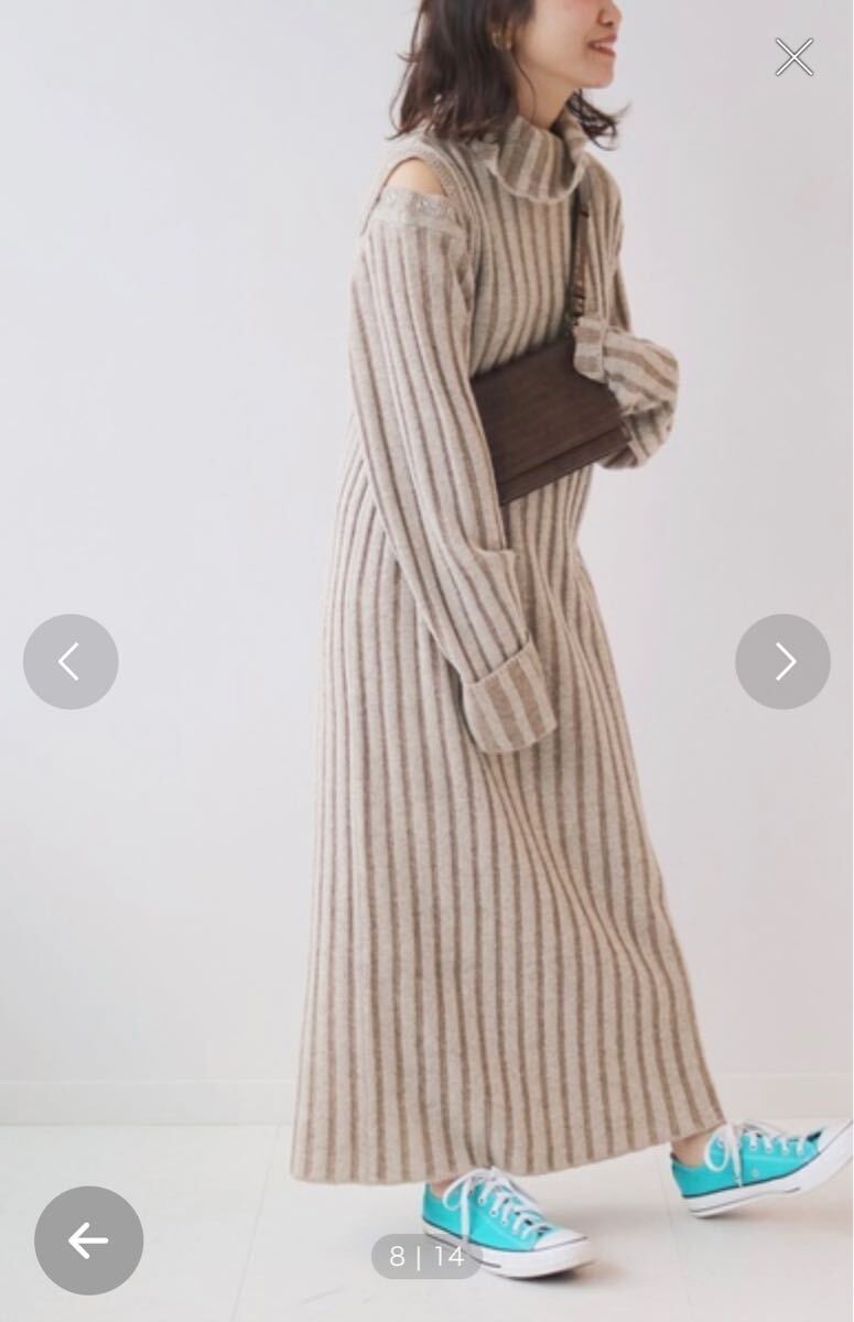 《SLOBE IENAオンラインストア限定ライン》【2019AW】SLOBE citron.2019AW October theme《Love's Knit.》大胆なシルエット、パッと目を惹くカラーリング、ざっくり柔らかな素材感・・・心ときめくデザインと、自由なスタイリングでニットがもっと好きになる。バイカラーのリブが目を惹くニットワンピース。長めの袖と着丈がよりルーズな印象に。右肩にあるスリットにはボタンが付いているので気分に合わせて着こなし方を変えられます◎1枚で着るのはもちろん、ボトムスとレイヤードしたスタイリングもおすすめ!