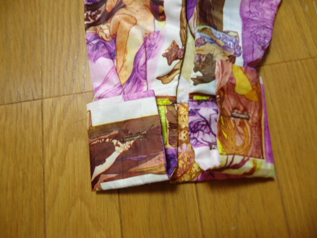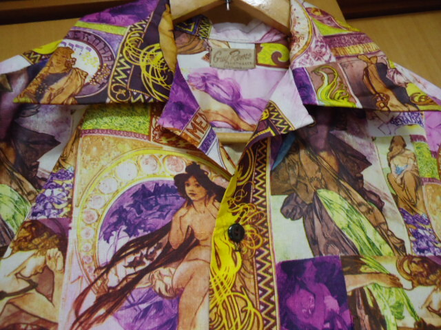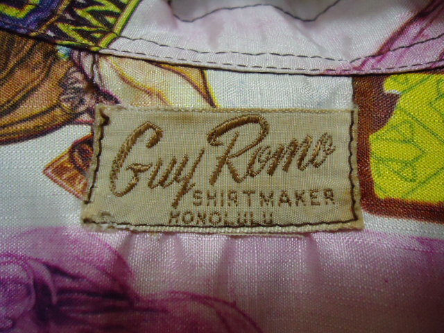 ハワイにて、USED物として、購入しました。長袖アロハシャツです。GUY ROMO社製。オールオーバー。ポリエステル素材です。カラーは、ヨーロッパ絵・女性柄です。ハワイ製。クリーニング済みです。なお、当商品のサイズ表示は、全てUSAサイズです。サイズ表示は、ありません。だいたいMぐらいですが、平置き実寸を重視して下さい。なお、少々誤差は、ご了承下さい。肩幅約45センチ・身幅(脇の下)約58センチ・丈約70センチ・袖丈約60センチです。目立ったダメージありませんが、ヴィンテージ物なので、古着に、ご理解のある方・24時間以内に、お手続き入力後、期限内にかんたん決済、出来る方のみ、ご入札をお願い致します。数字はこちらの整理番号です。この商品は、1点物です。 ※※発送方法・送料は、レターパックライト郵便(追跡可能・補償無し)ですと、430円又は、レターパックプラス郵便(追跡可能・手渡し配達・補償無し)ですと、600円又は、ゆうパック送料着払い便(持ち込み割引有り・追跡可能・手渡し配達・補償有り・かんたん決済時は、送料0円ですが、送料のみ到着時支払い)です。※※ ☆★★★★★☆送料は、変わりますが、何点でも、同梱包可能です。数点落札されましたら、まとめて取引を、選択お願いします。☆★★★★★☆