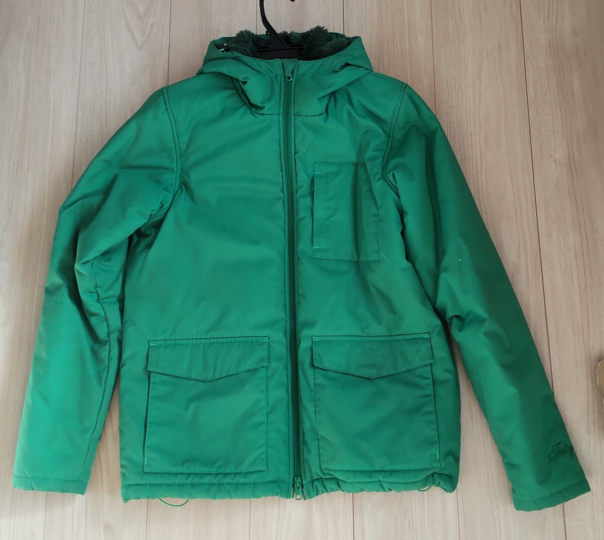 fatらしいアメカジをベースにした個性的なデザインになり、マウンテンジャケットの雰囲気もありつつタウンユースな使用となっています。色は冬に映える明るめの緑、ポケット、収納もありフード裏はボアで保温性も良いです。またクリーニング済ですのですぐに着用していただけます。