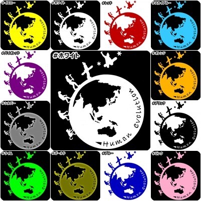 ご落札頂いたあとに、取引連絡にてご指定ください。 ・ブラック、ブルー、ホワイト、レッド、シルバー、スカイブルー、イエロー、ライム(黄緑)、ゴールド、ピンク、オレンジ、バイオレッド ご指定がない場合は商品画像のカラーにて送付させて頂きます。 ・左向きもしくは右向き(横型の人類の進化のみ、地球型、炎上型を除く) |