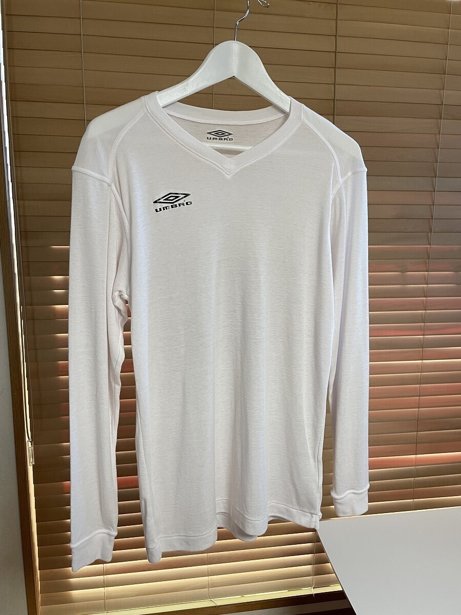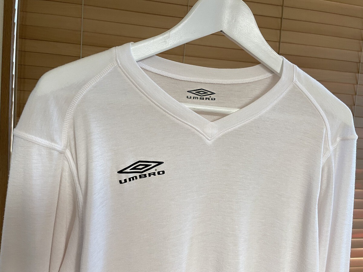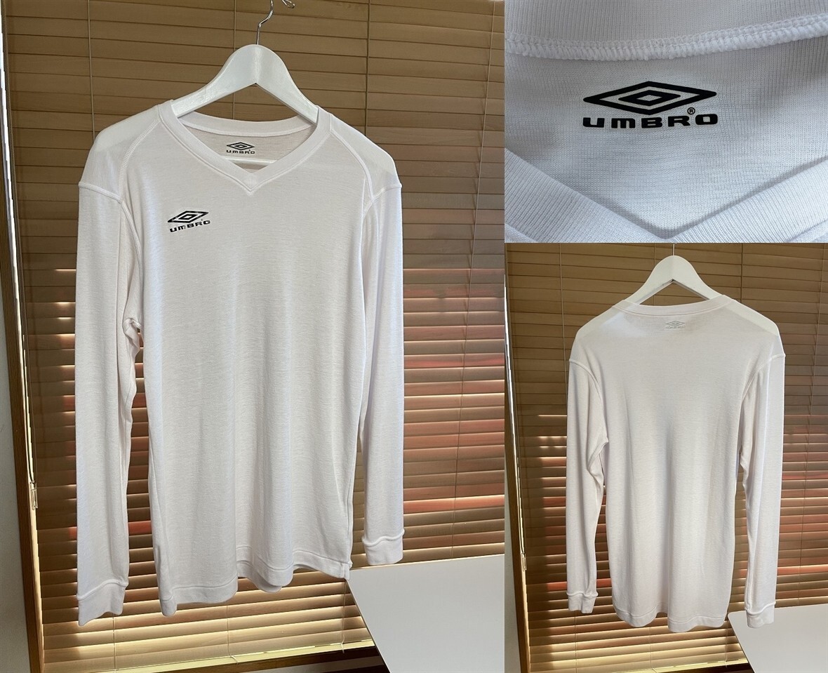 【激安1点のみ 国内正規品】UMBRO アンブロ Vネック 長袖 Tシャツ ロンT O-XO ホワイト系 UBA7133 吸湿発熱 ポリエステル アクリレート系繊維