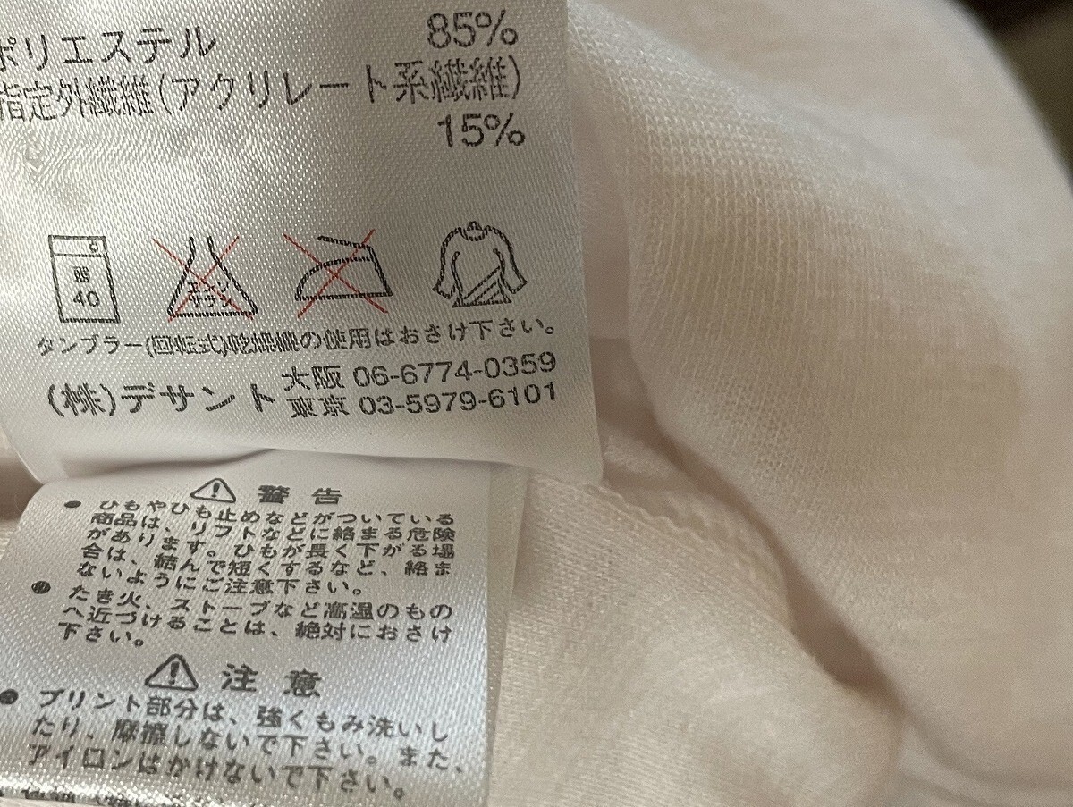 素材:ポリエステル85% 指定外繊維(アクリレート系繊維)15%
