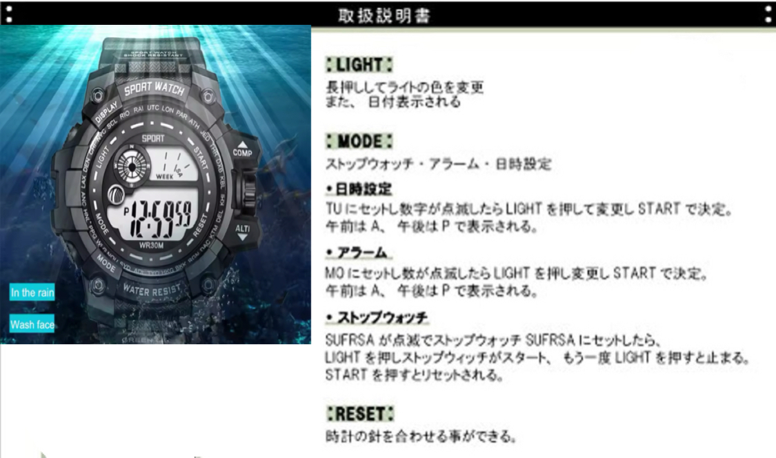 安心の日常生活用強化防水仕様でございます。(長時間水中の中やボタンを押さないでください。)