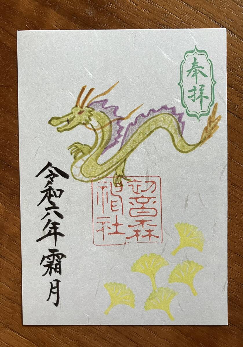 【御朱印61】初音森神社★辰年11月限定御朱印★龍★イチョウ★御朱印帳用書置き