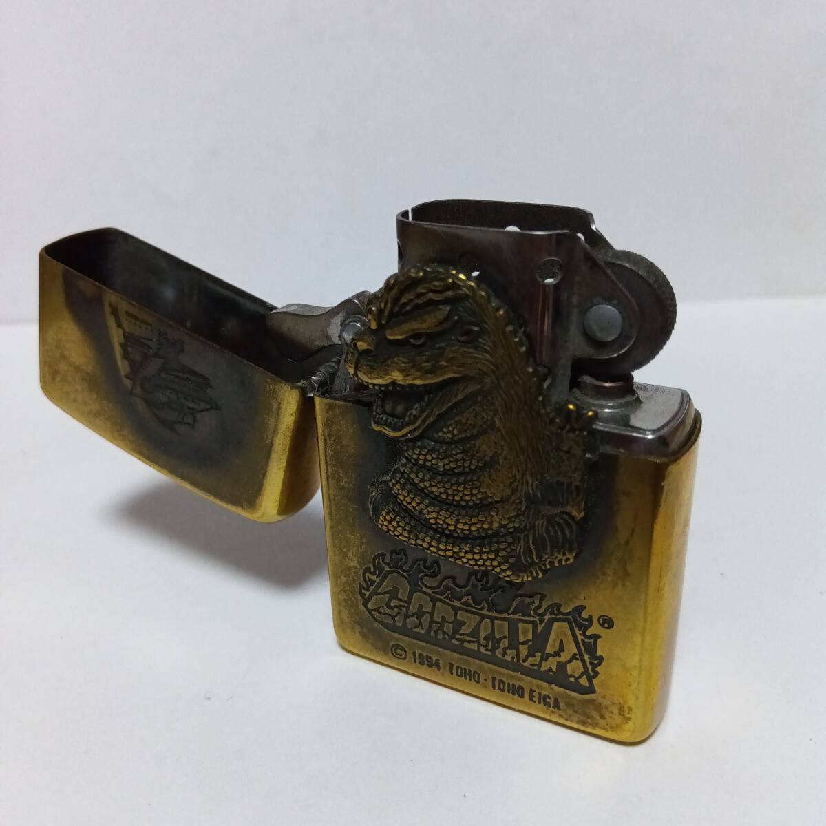 1994年製のゴジラ立体彫刻アンティーク風のジッポです。