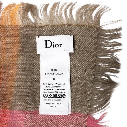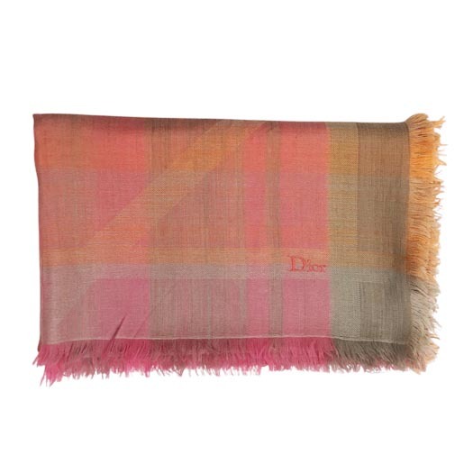| クリスチャン ディオールのストール「大判ストール/マフラー」です。グラデーション調のチェック柄でウール×カシミヤ×シルクで手触りもよく温かいので、様々なシーンで活躍します。 | ||