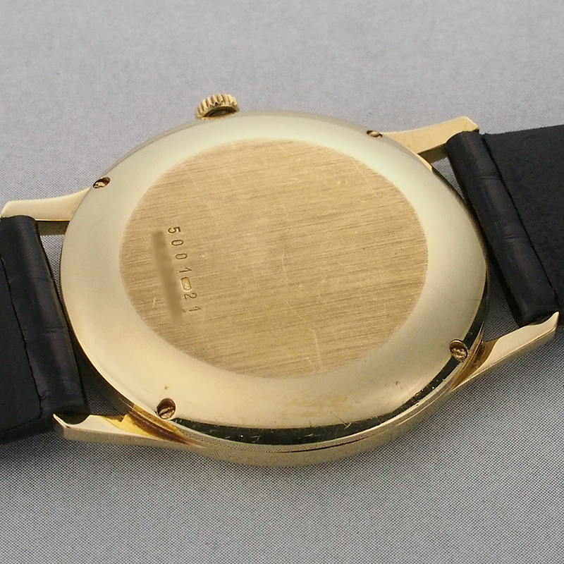 備考:爽やかなホワイトフェイスにブラックカラーの針とローマンインデックスが配されたラウンドウォッチ。3時位置にデイト表示を備え、18金イエローゴールド製のケースがゴージャスでエレガントなデザインのアイテムです。
