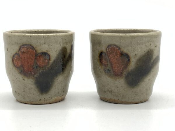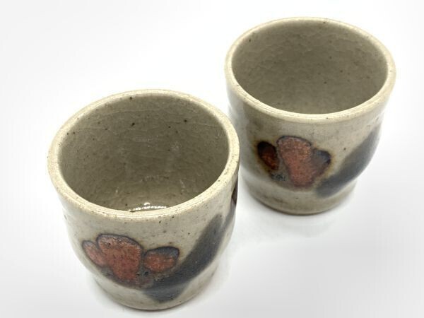 【酒器】 灰釉鉄絵 『梅図 お猪口 2個』 酒器/酒瓶/ぐい呑み   N1222C