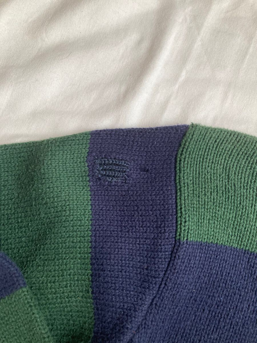 ラルフローレン十八番のアイビーカラーであるグリーンネイビーのボーダーに左胸の赤いポニー刺繍がアクセント。