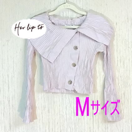 Big Collar Ribbed Knit Top ニット カットソ- 薄紫 長袖 Her lip to
