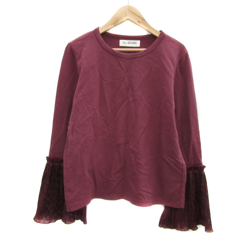 レイビームス Ray Beams カットソー 長袖 フレアスリーブ ラウンドネック 無地 くすみレッド /YS41 レディース