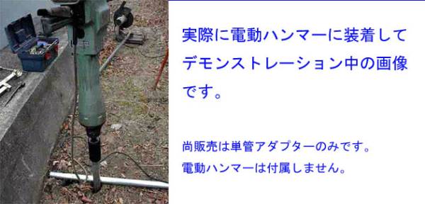 電動ハンマーに装着して、単管(48.6Φ)及び杭を地中に打込む為のアダプターです。