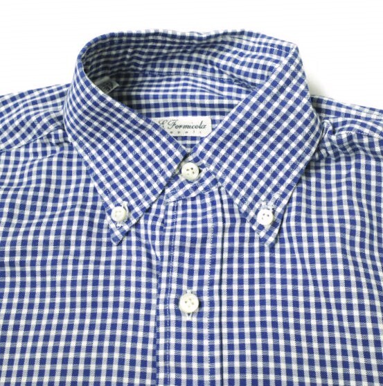errico formicola エリッコフォルミコラ イタリア製 ギンガムチェックボタンダウンシャツ 21-11-0259-264 37(141/2) ブルー g19107