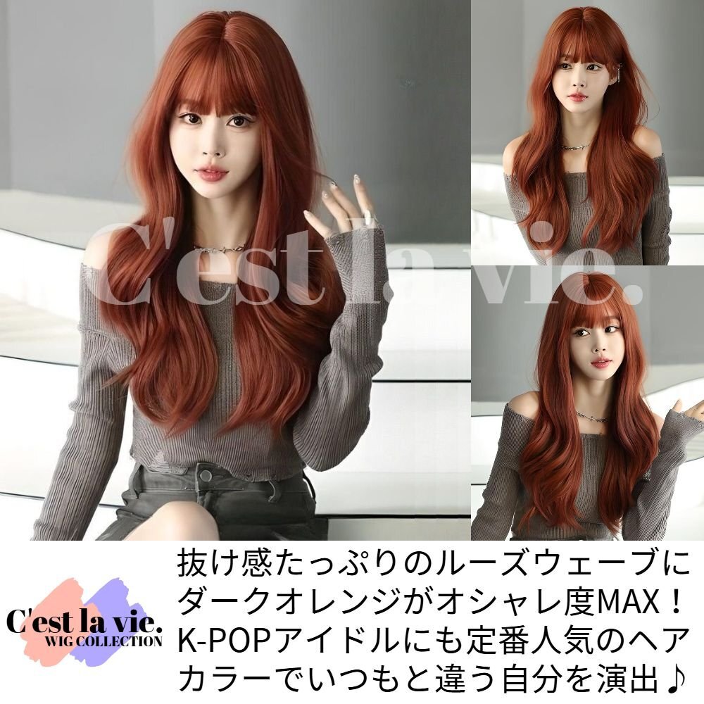 ウィッグ ロング ルーズ ウェーブ オレンジ ブラウン フルウィッグ 前髪あり 医療用 かつら 自然 バレない 即日出荷 送料無料