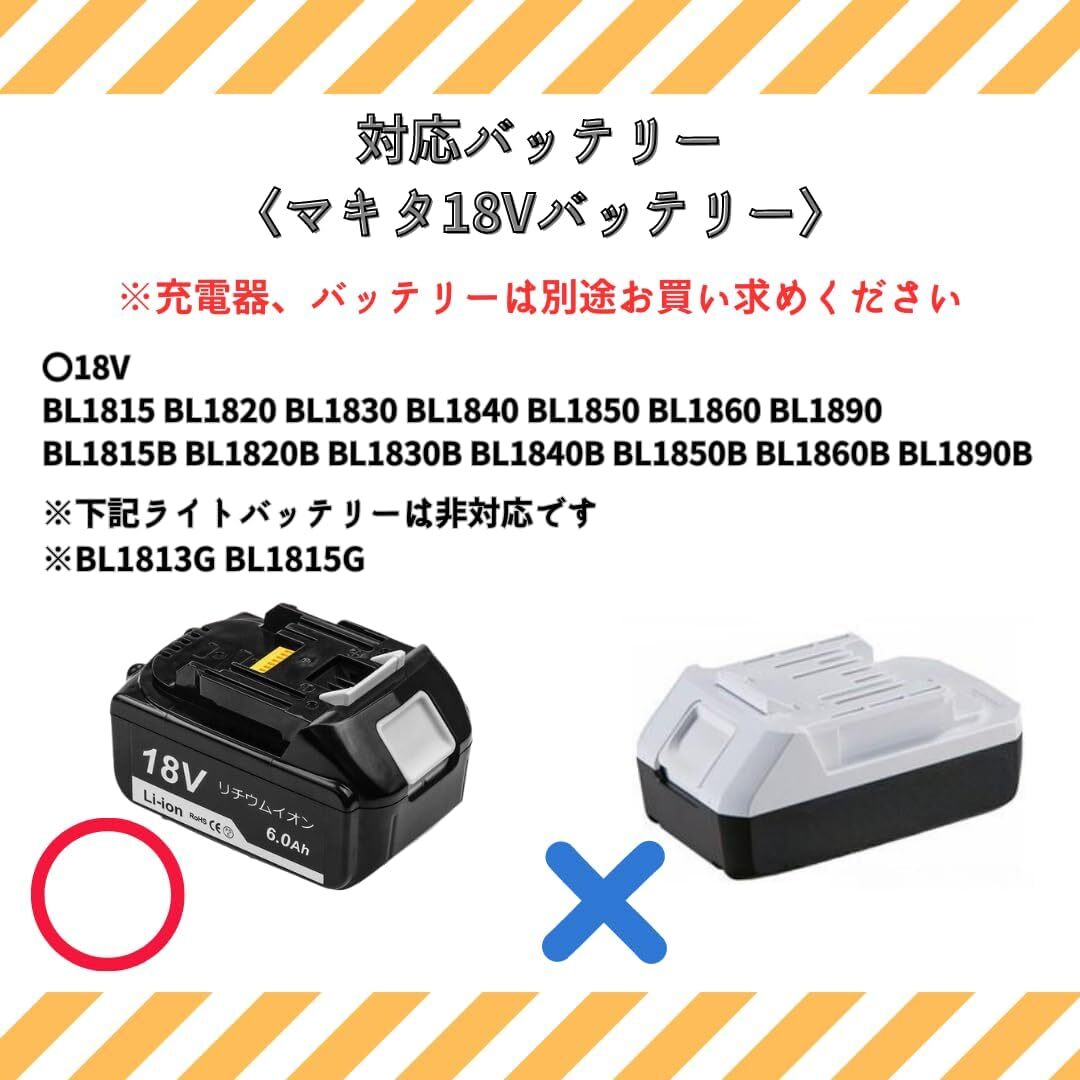| 《スペック》 ・最大トルク280Nm ・最大回転数3200回転/分 ・サイズ20*16*8㎝ 《パッケージ内容》 ドライバー*1 フック*1 説明書 ※本体と付属品のみとなります。 充電器、バッテリーは別途お買い求めください 対応バッテリー 〈マキタ18Vバッテリー〉 18V BL1815 BL1820 BL1830 BL1840 BL1850 BL1860 BL1890 BL1815B BL1820B BL1830B BL1840B BL1850B BL1860B BL1890B ※下記ライトバッテリーは非対応です※ BL1813G BL1815G
