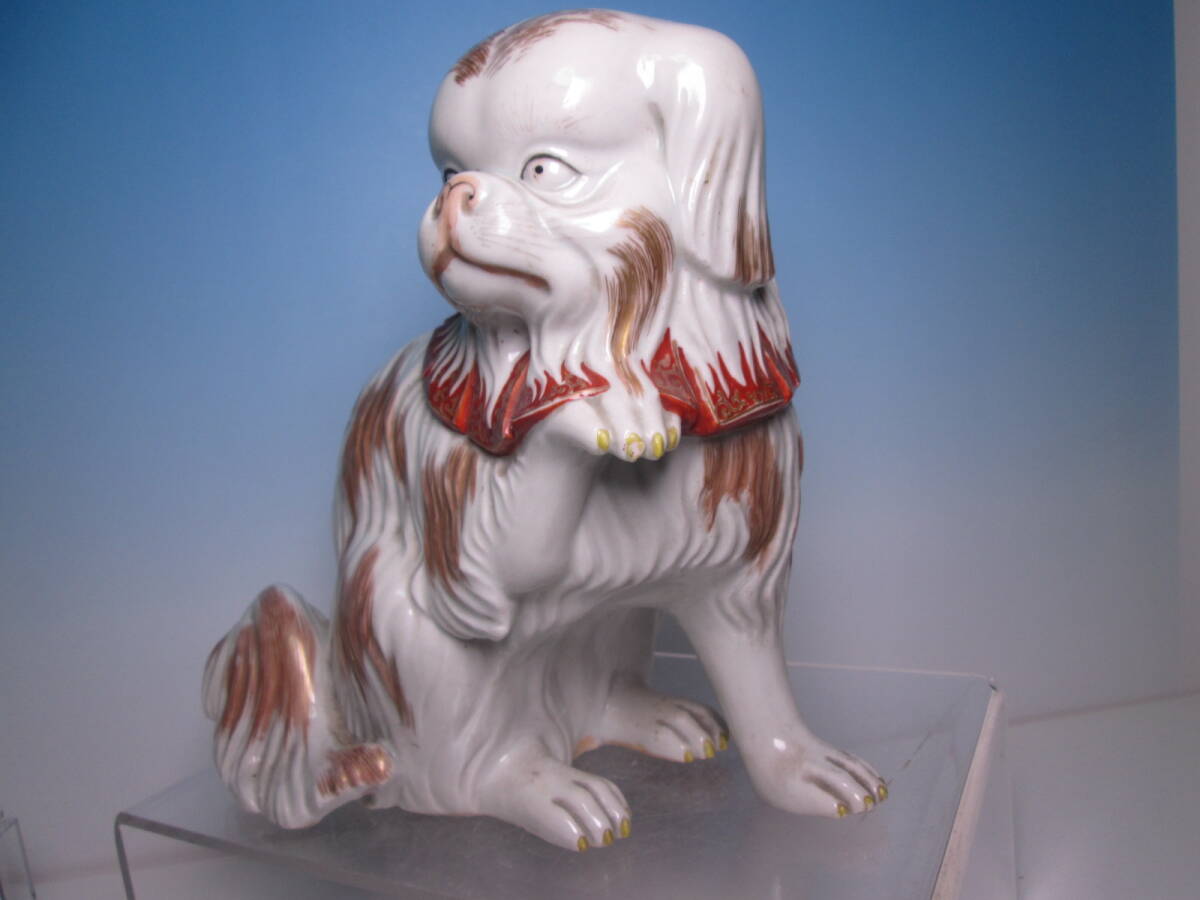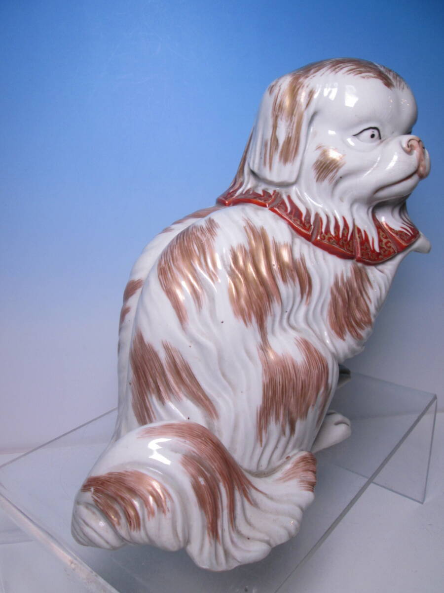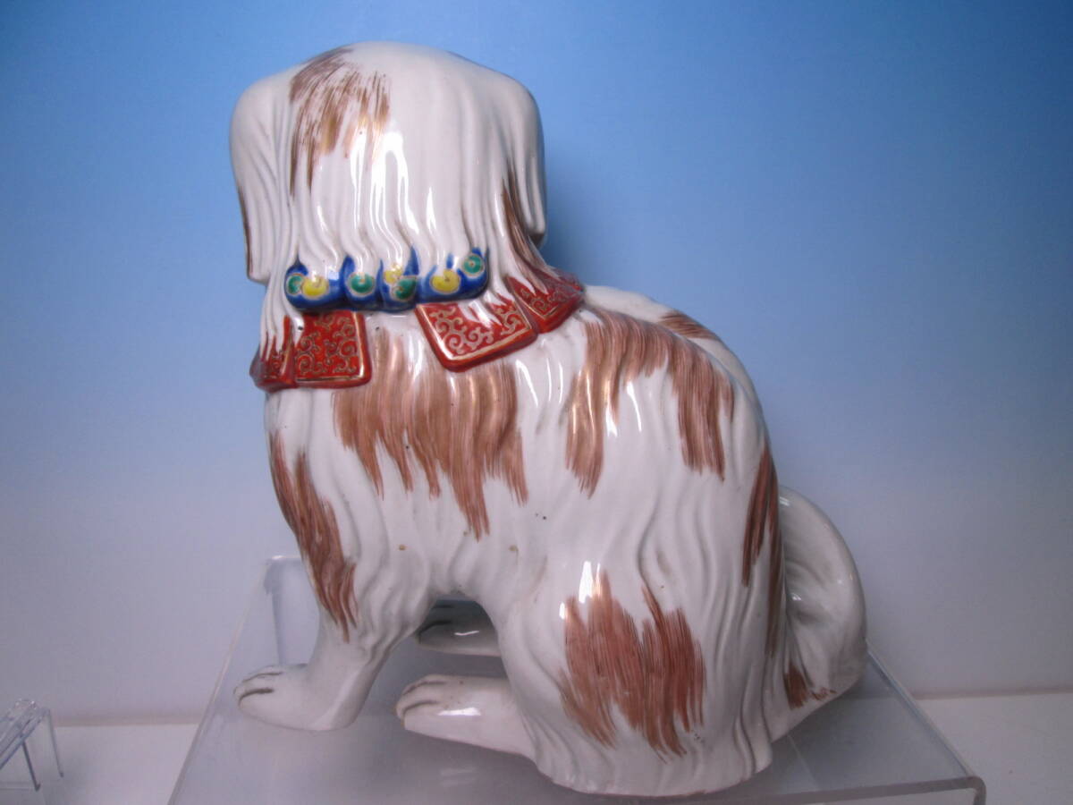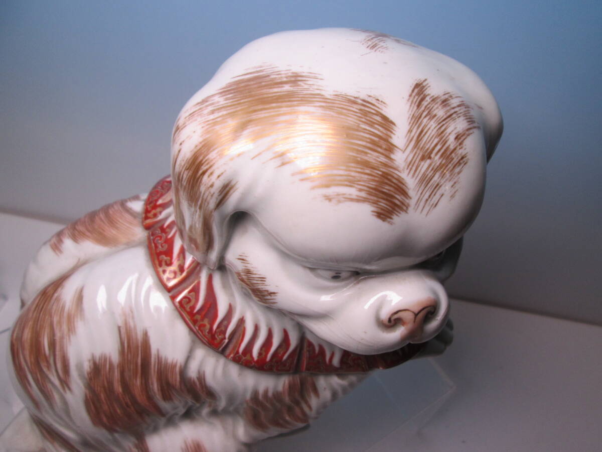 ☆お料理屋さんの店飾り 古い九谷焼 金彩色絵 チンの置物 H22cm 犬