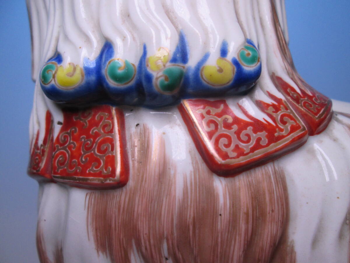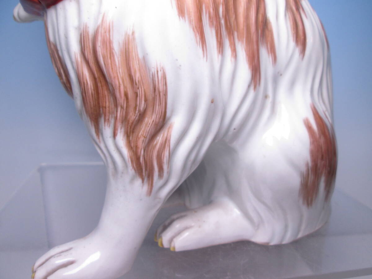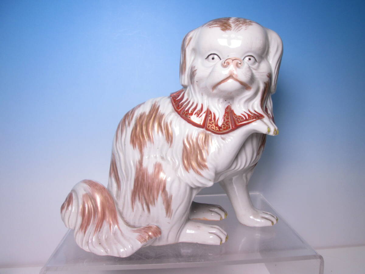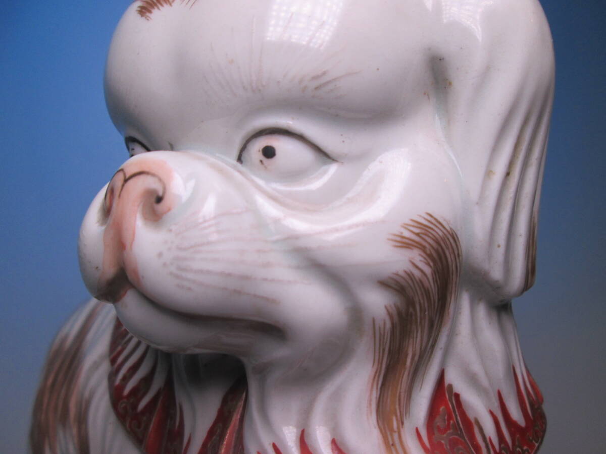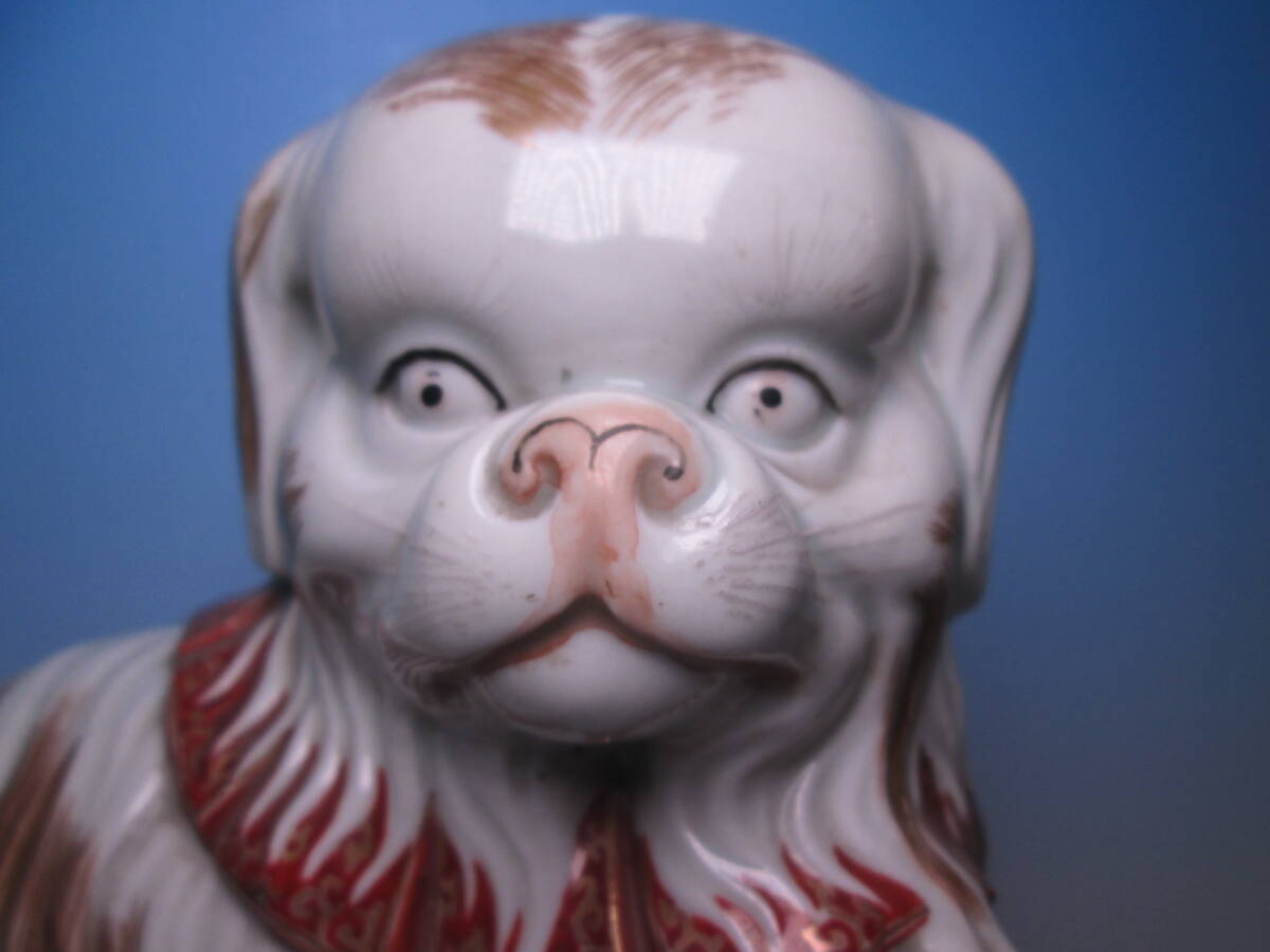 ☆お料理屋さんの店飾り 古い九谷焼 金彩色絵 チンの置物 H22cm 犬