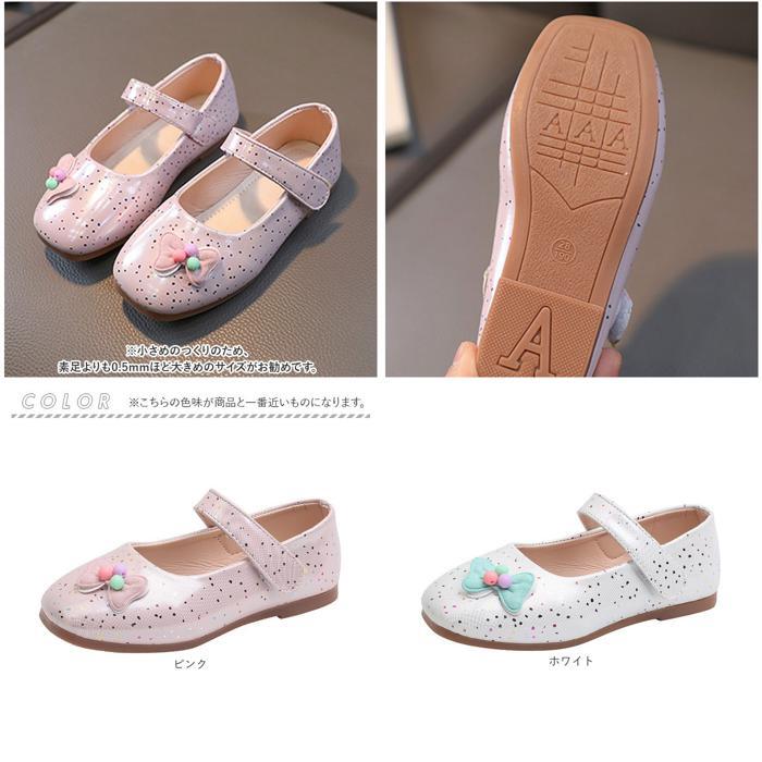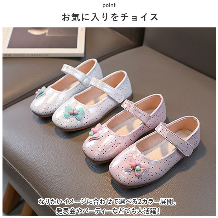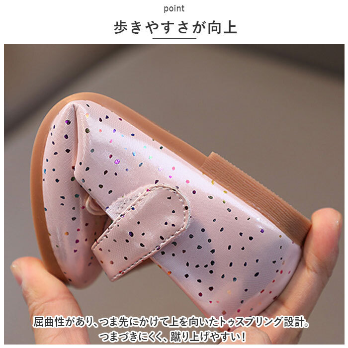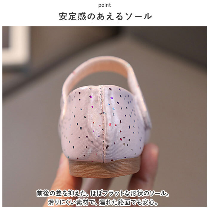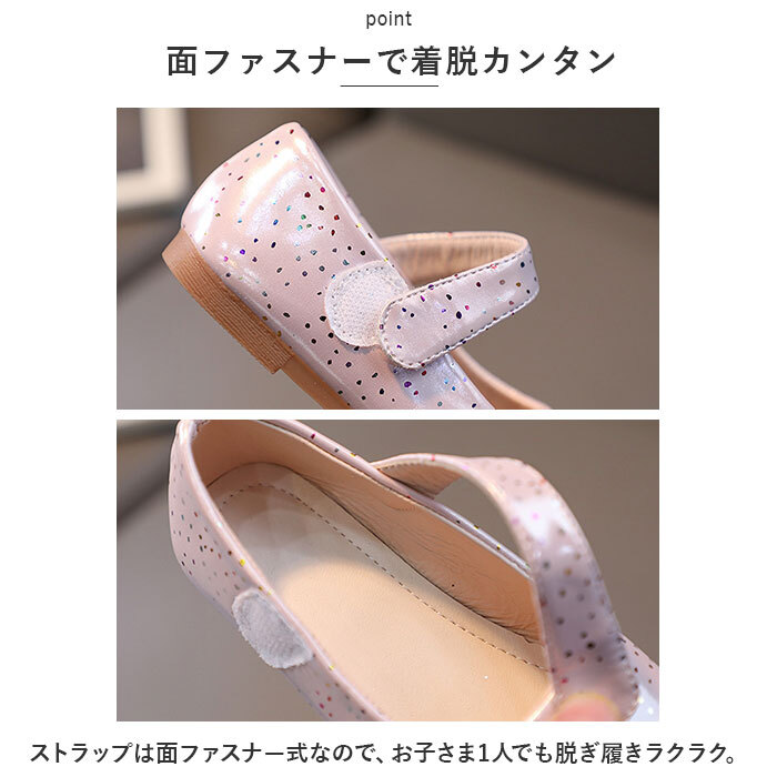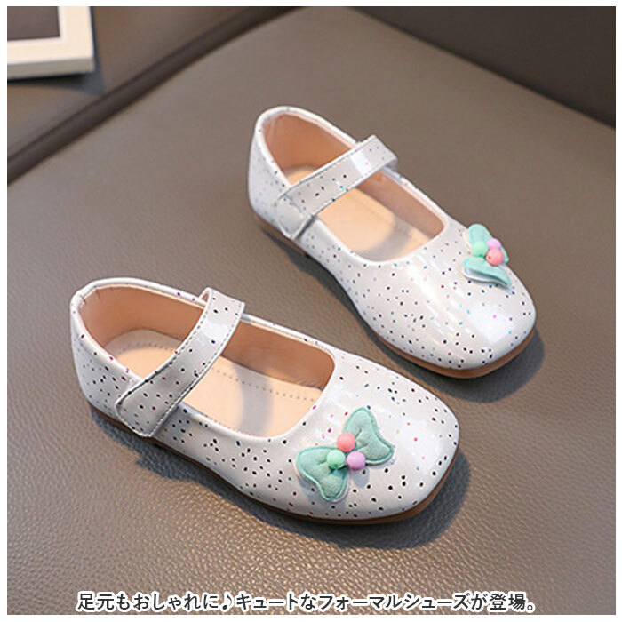 商品説明 | ・・足元もおしゃれに♪キュートなフォーマルシューズが登場。 ・【程よい存在感】 ・カラフルなちょこっとペイントを散りばめ、立体感のあるリボンデザインがアクセント。 ・【面ファスナーで着脱カンタン】 ・ストラップは面ファスナー式なので、お子さま1人でも脱ぎ履きラクラク。 ・【歩きやすさが向上】 ・屈曲性があり、つま先にかけて上を向いたトゥスプリング設計。つまづきにくく、蹴り上げやすい! ・【安定感のあえるソール】 ・前後の差を抑えた、ほぼフラットな形状のソール。滑りにくい素材で、濡れた路面でも安心。 ・【お気に入りをチョイス】 ・なりたいイメージに合わせて選べる2カラー展開。発表会やパーティーなどでも大活躍! |