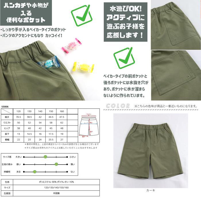 | 商品説明 | ・・汗や水に濡れてもすぐ乾く速乾生地使用!日々のお洗濯もラクラク。 ・大きなベイカータイプのポケットがアクセント。軽量のストレッチ生地でスポーツはもちろん、通園・通学にもピッタリ。 ・しっかり手の入るポケット付。発色の良いカラーで大人気!ポケットに水抜き穴があり夏場の水遊びも楽しめちゃう。 |