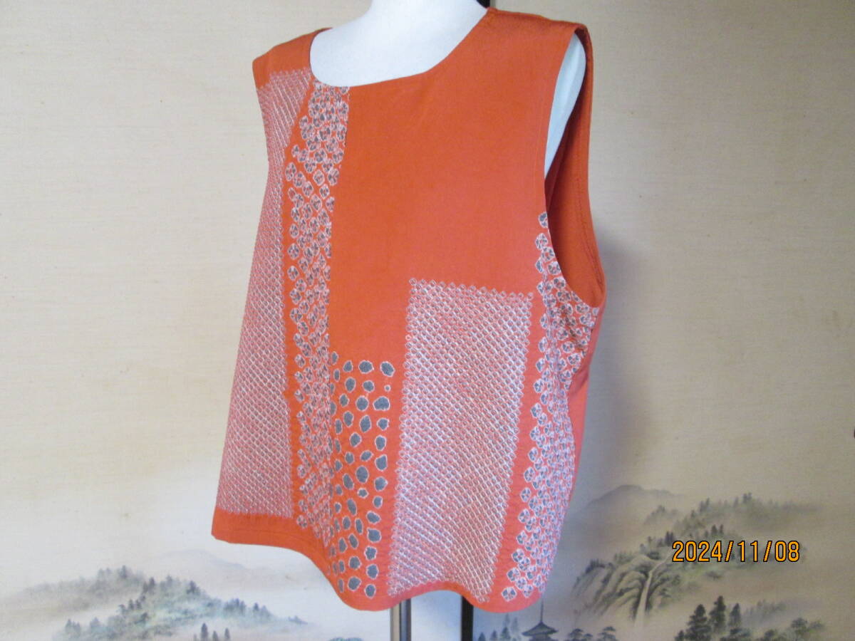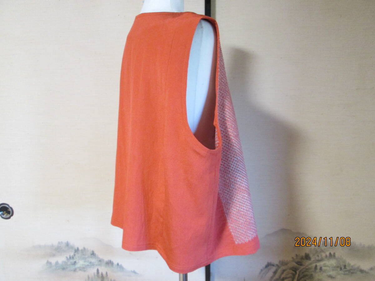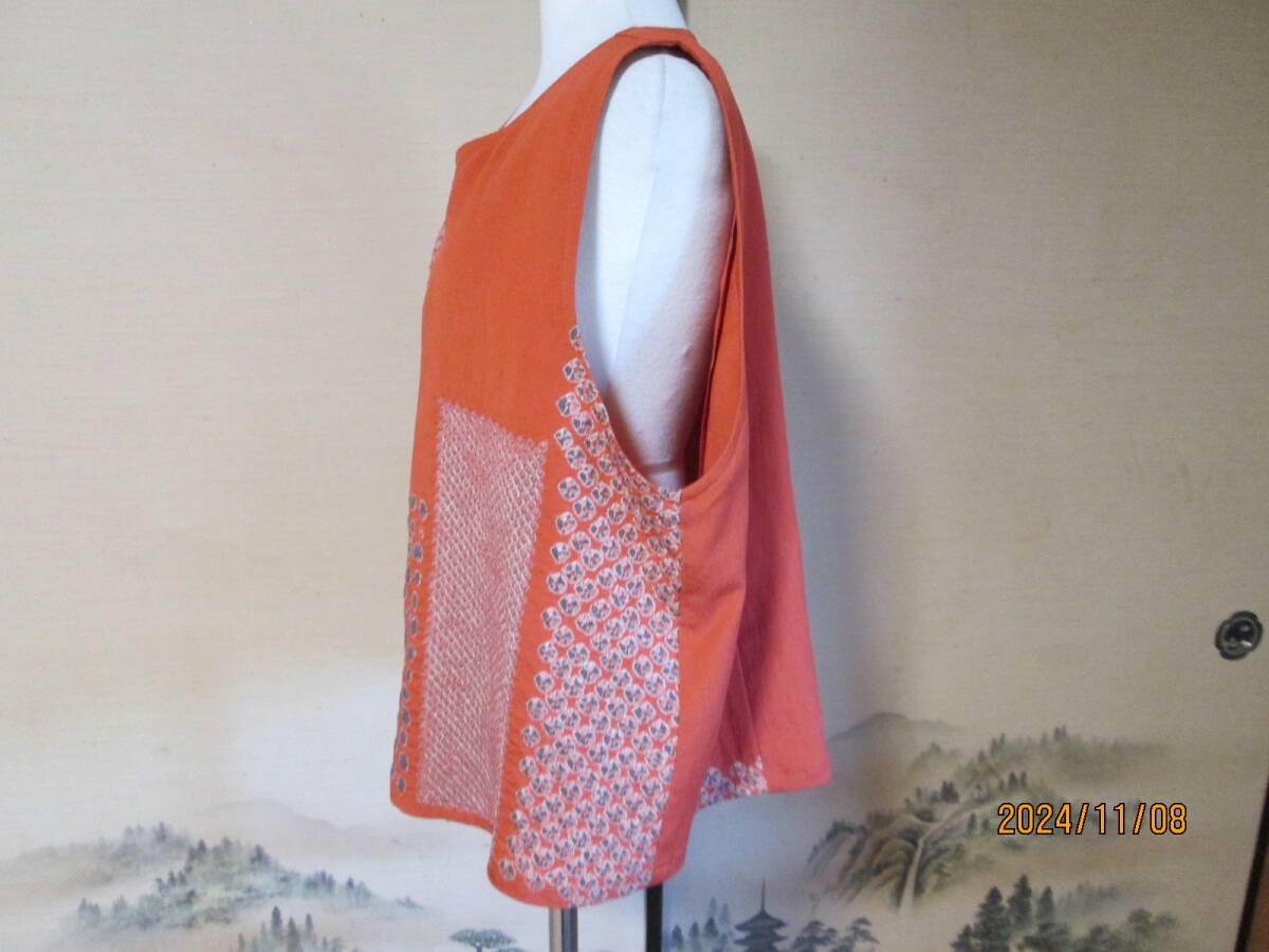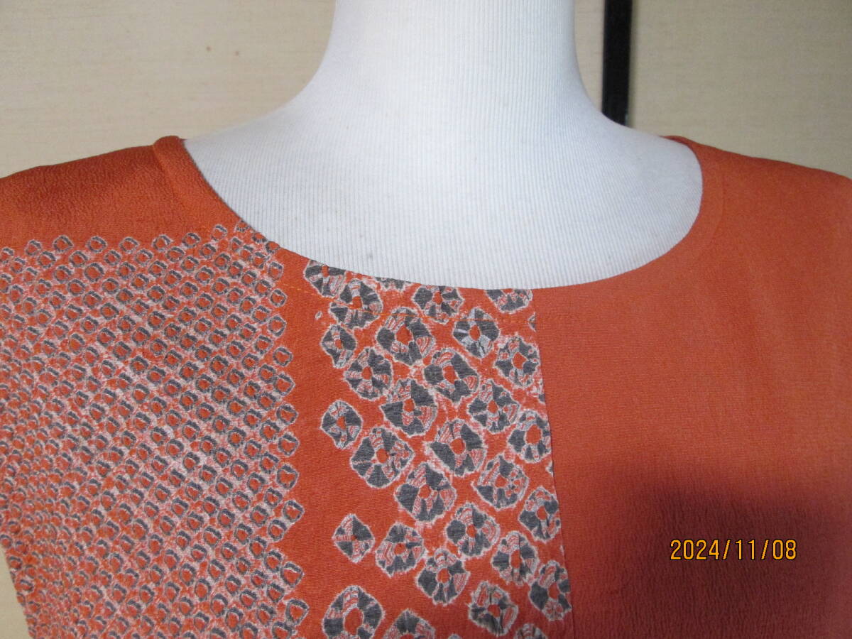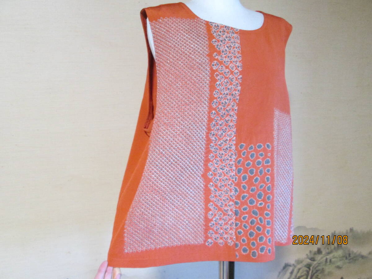 新品未仕立ての正絹絞り模様入り着物からふくよかさん用ベスト!着物リメイク!オレンジ系!ハンドメイド