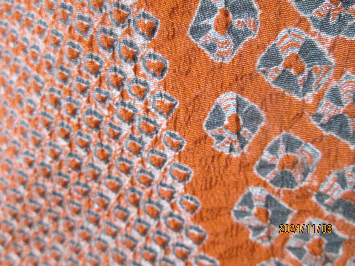 食べごろのカキのようなお色味に 絞りの模様が入っている素敵で上質な生地ですよ。