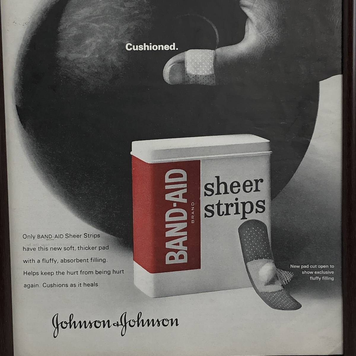 1960年代当時のアメリカの雑誌 LIFEに掲載されていた『  バンドエイド( BAND AID ) 』の広告を額装いたしました。