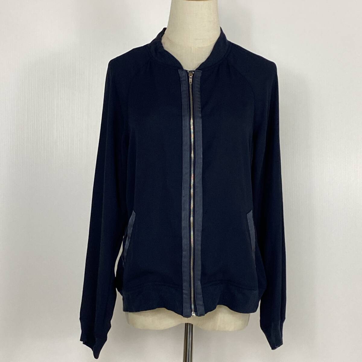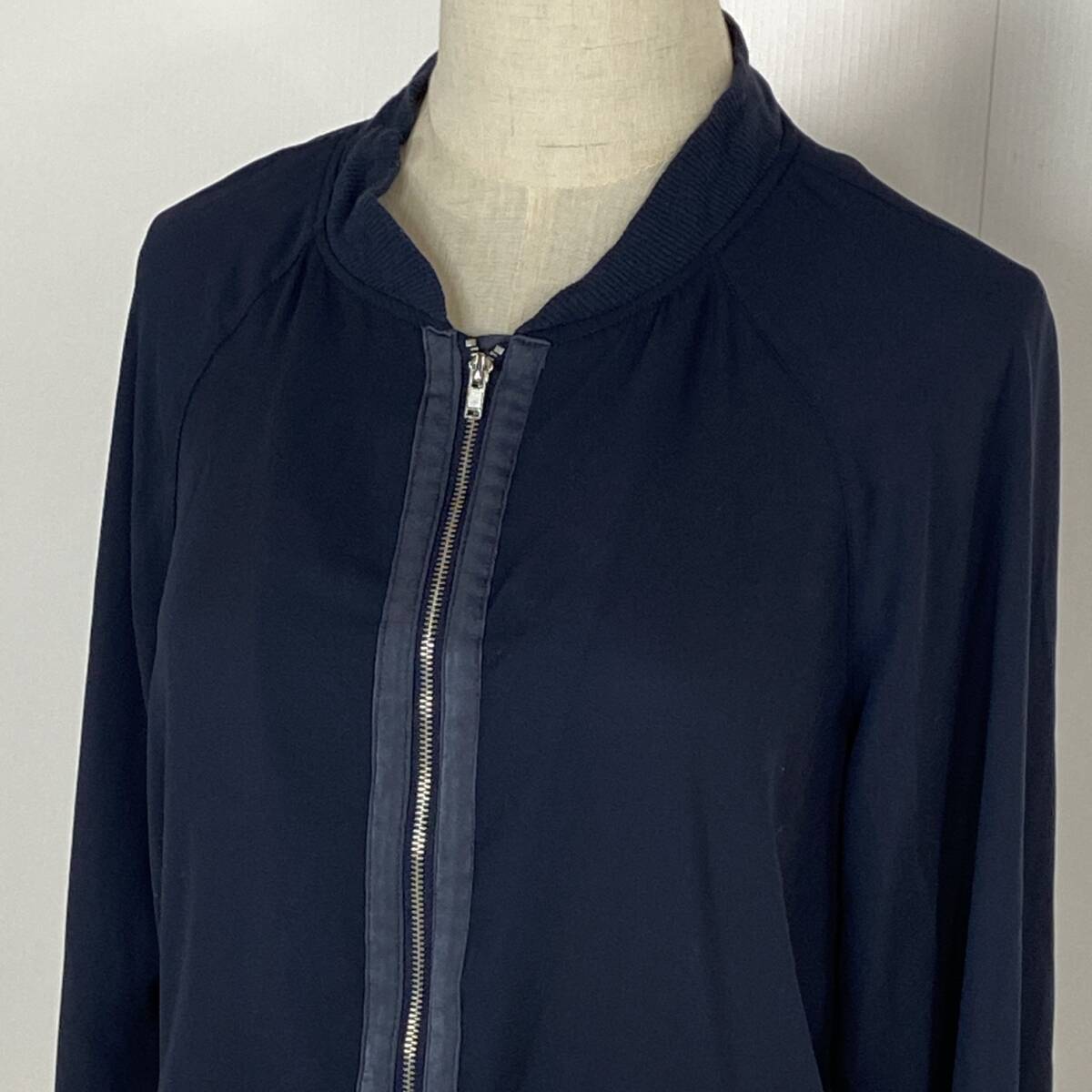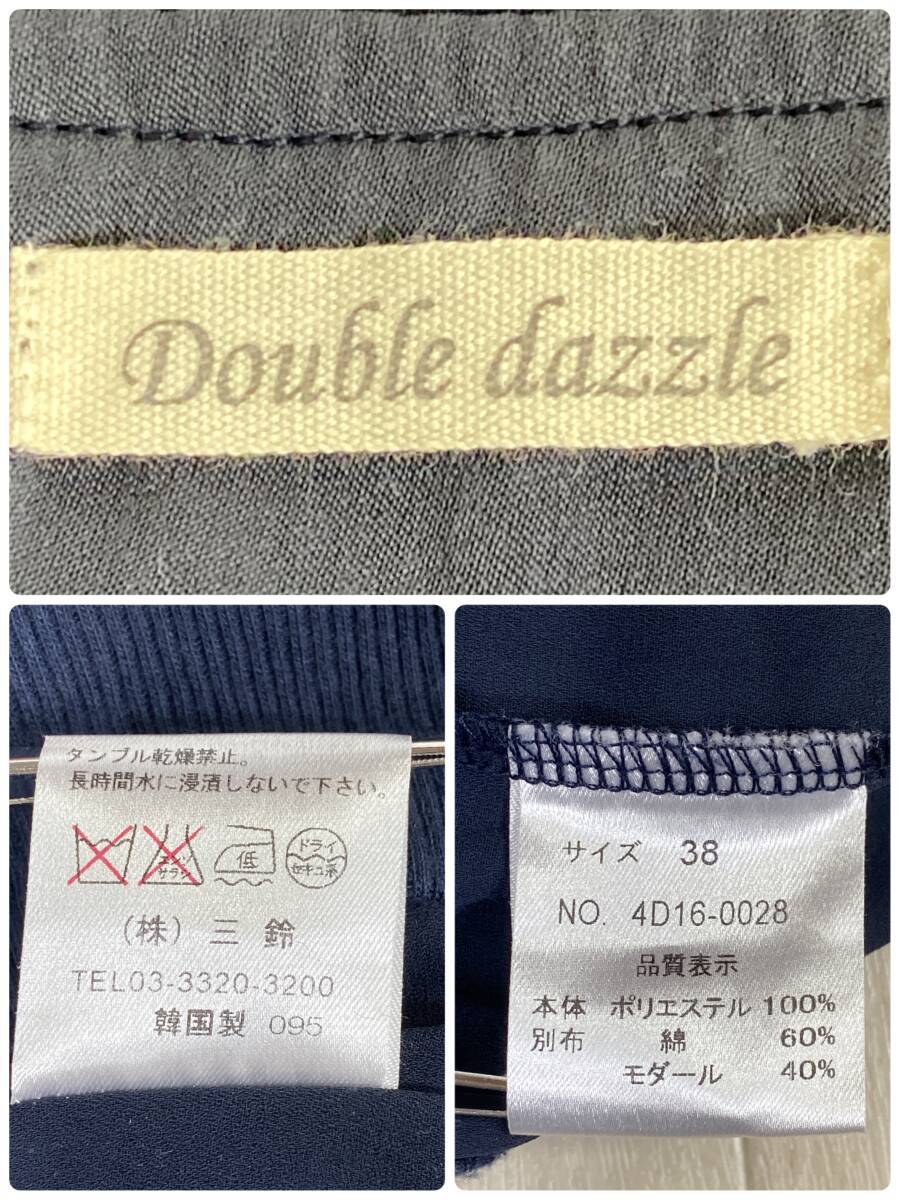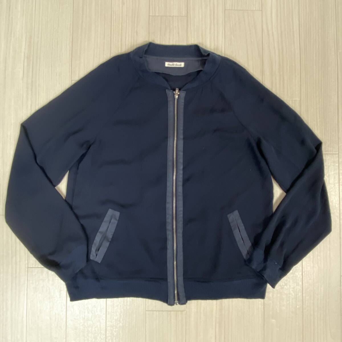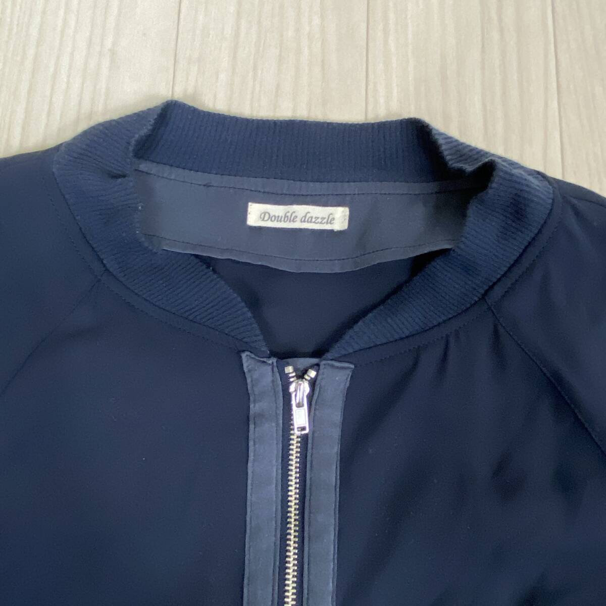 YZ1212 美品 Double dazzle ダブルダージル レディース コットン ジャケット ブルゾン ノーカラー 38サイズ ネイビー 万能 カジュアル USED