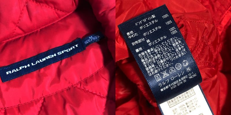 Ralph Lauren Sport ラルフローレン キルティングジャケット 刺繍 M 赤 ジップアップ レディース OU9