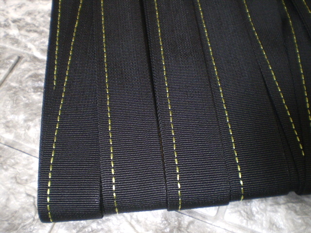 商品説明 | ●サイズ :幅=37mm、厚さ=1.5mm、長さ=10m ●重量=約320g ●主な素材=PP ●色=黒、ステッチ色=黄色 ●平織 ※こちらの商品は他の商品と同梱不可です。 |