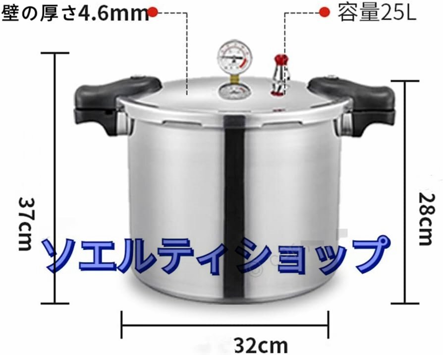 圧力鍋 業務用 大容量 圧力計付き アルミ合金 家庭用 気密性が高く調理器具 ガスコンロ用圧力鍋 超高圧で省エネ 時短 (25L)