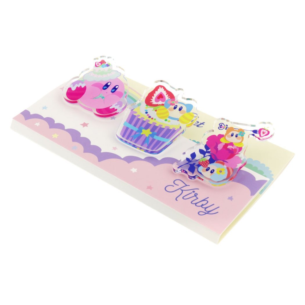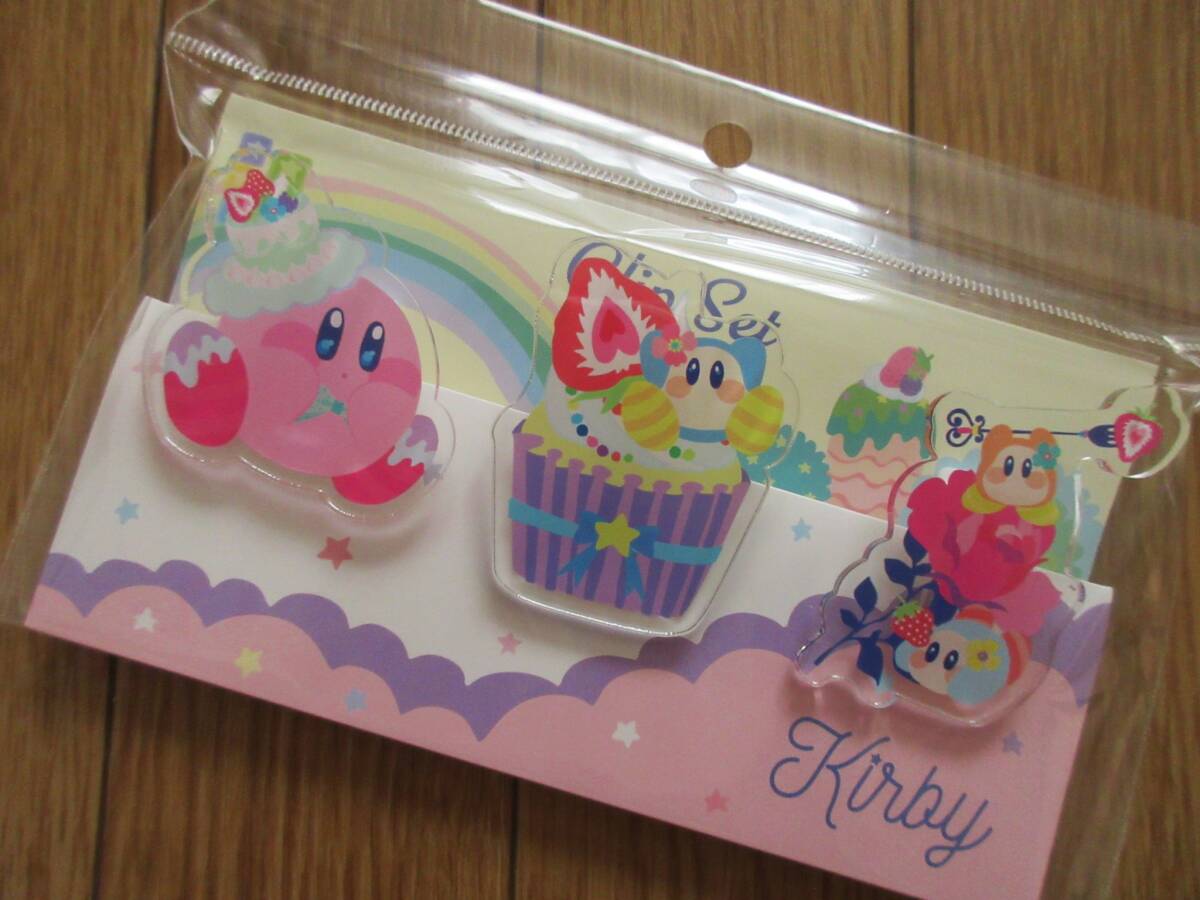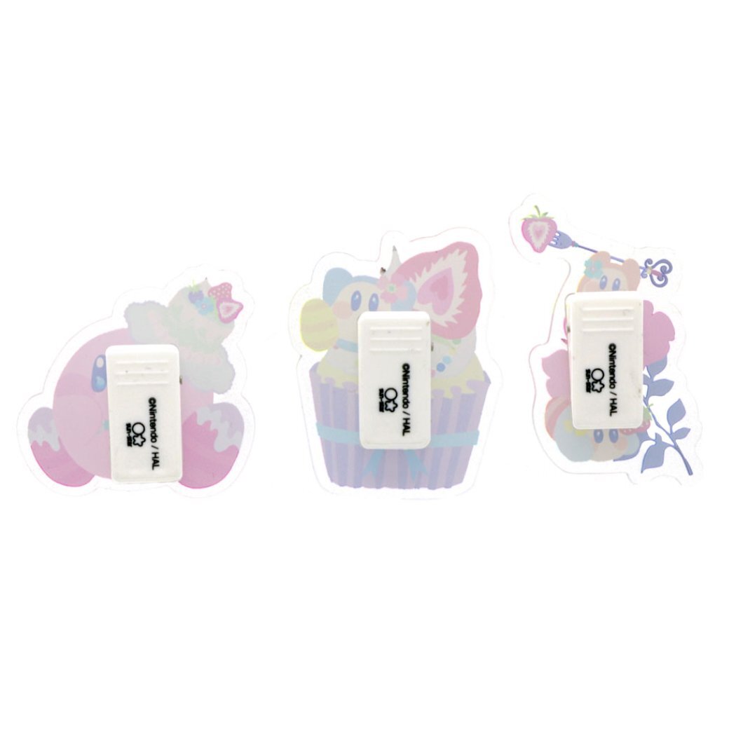 星のカービィとイラストレーターのホラグチカヨさんのコラボアクリルクリップ(3個入り)です。