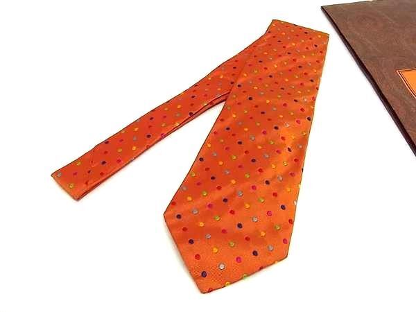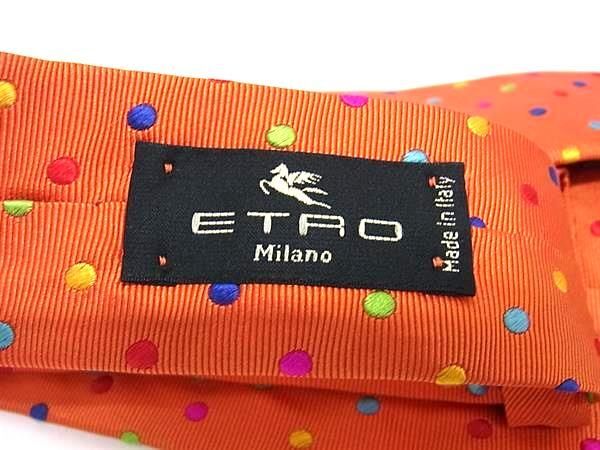 ■新品同様■ ETRO エトロ シルク100% ドット柄 ネクタイ ビジネス 紳士 メンズ オレンジ系×マルチカラー BF8265