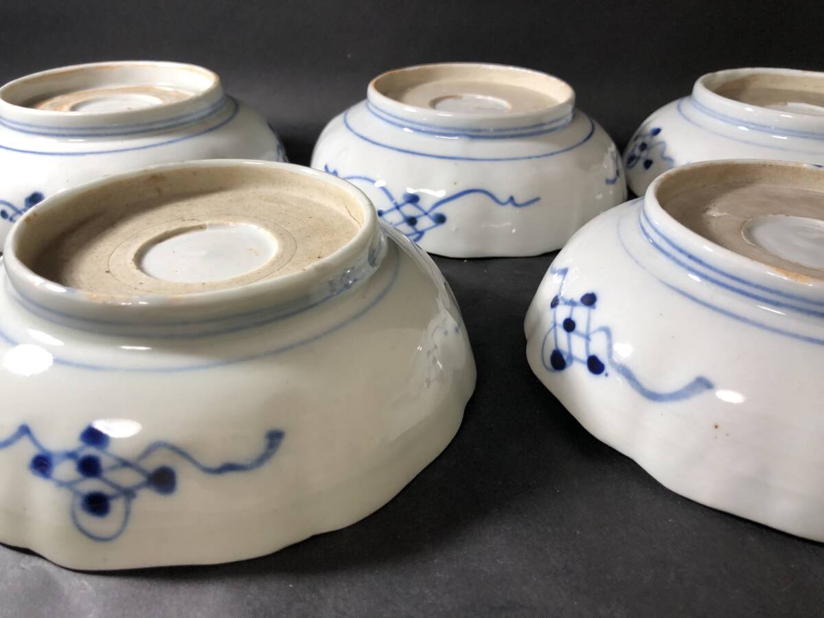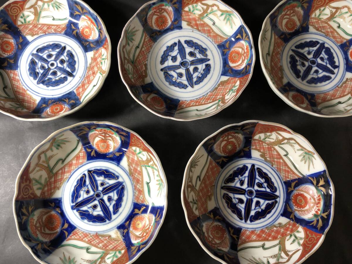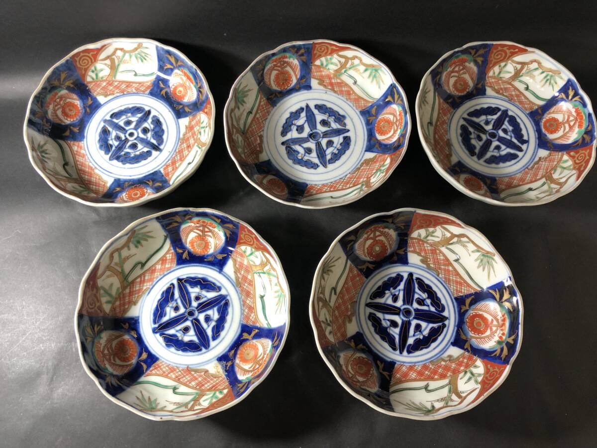 古伊万里 赤絵 染錦 色絵 なます皿 なます鉢 五客 骨董雑貨 和食器 生活骨董 テーブルコーディネート