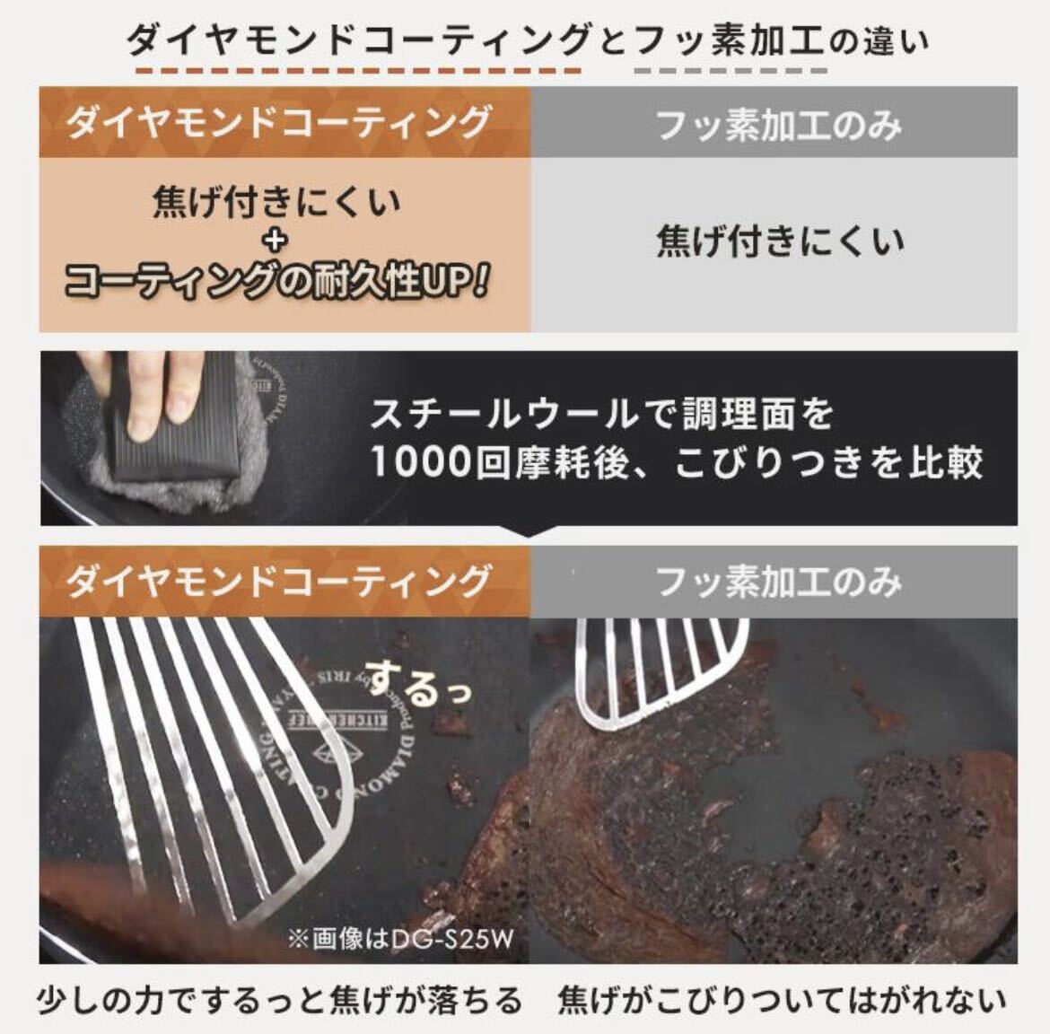 人工ダイヤモンドを細かい粒子状にして、ふっ素樹脂コーティングに配合した「ダイヤモンドコーティング」仕様。