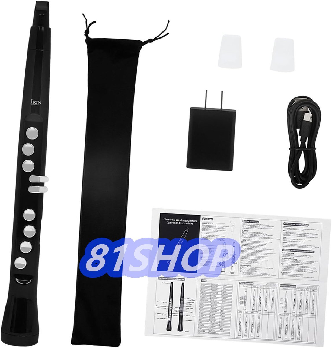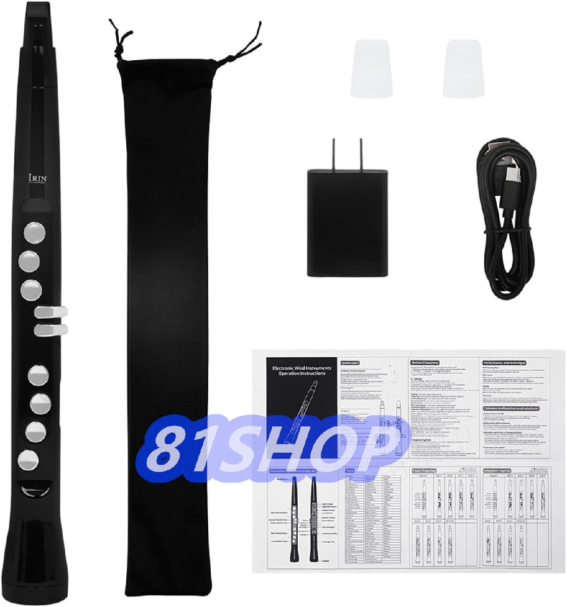 【パッキングリスト】:ポータブルサックス1本、交換可能なマウスピース2本、USアダプター1個、収納バッグ1個、USBケーブル1本、取扱説明書1冊。