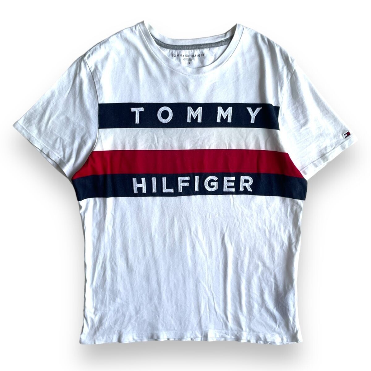 インド製 TOMMY HILFIGER トミー ヒルフィガー レディース 半袖 ワッペン 刺繍 ロゴ Tシャツ L TEEトップス カットソー カジュアル 古着