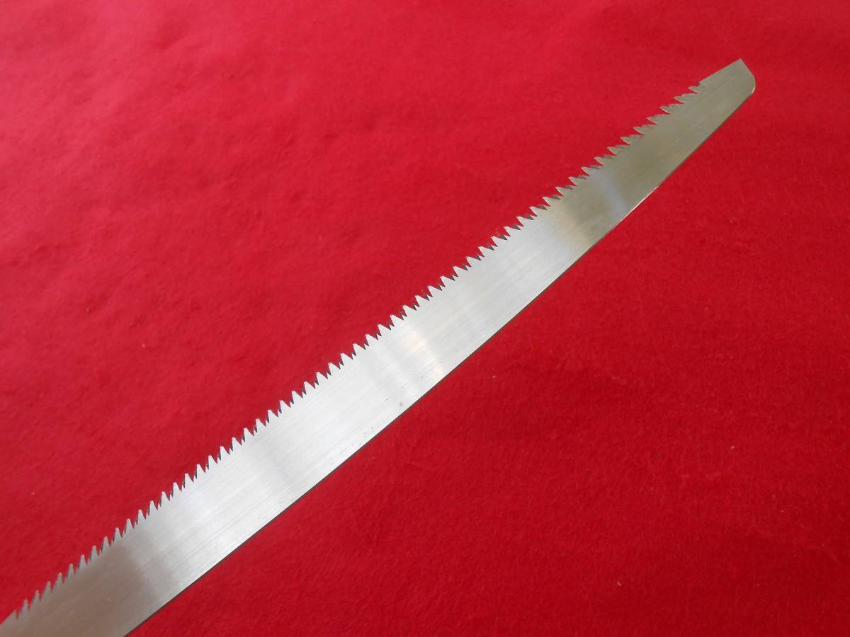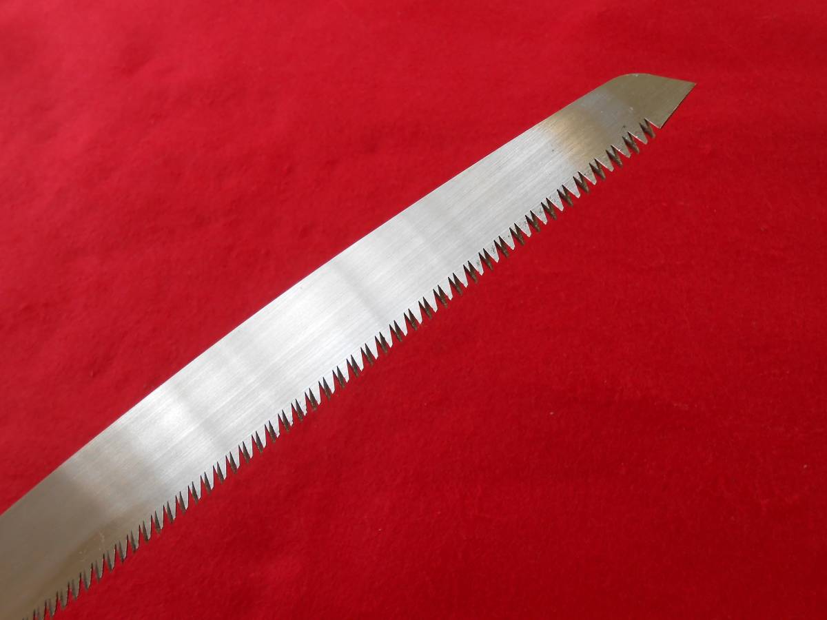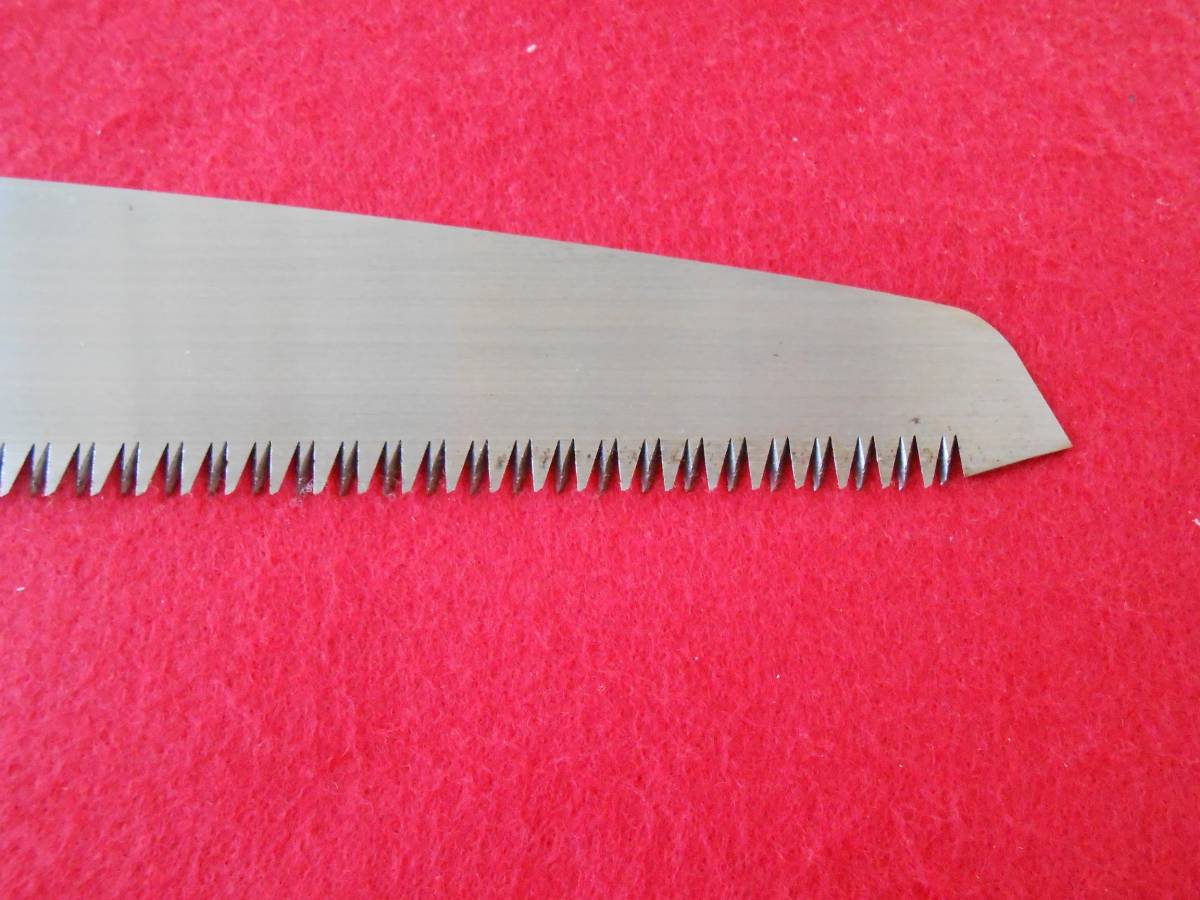 | 商品説明 | 金物の町、兵庫県三木市で作られた剪定鋸です。 新品です。古い品物ですが、きれいな状態です。 柄も握りやすい形状で使い勝手が良いと思います。 気にされない方は、お買い得です。 剪定鋸としては、鋸目が、細かいので切り口は、きれいになります。 鋸の目のピッチなども含めて、写真でご確認下さい。 全長 約425mmです。 刃渡り 270mm 柄の長さは、約160mm 他の落札品と同梱包可能です。 |