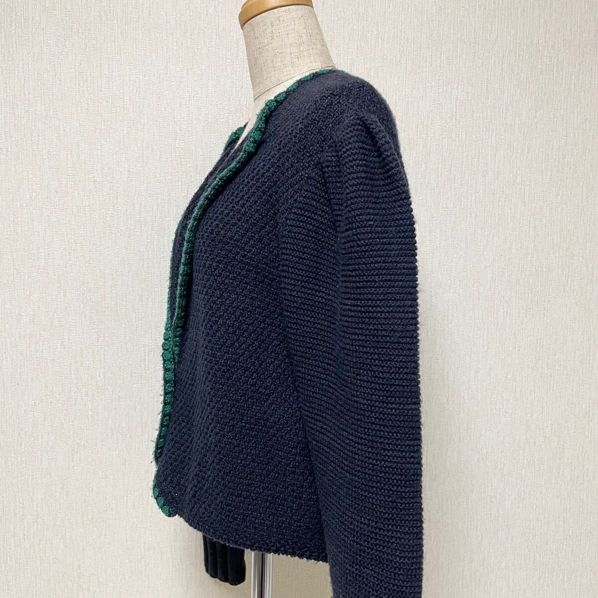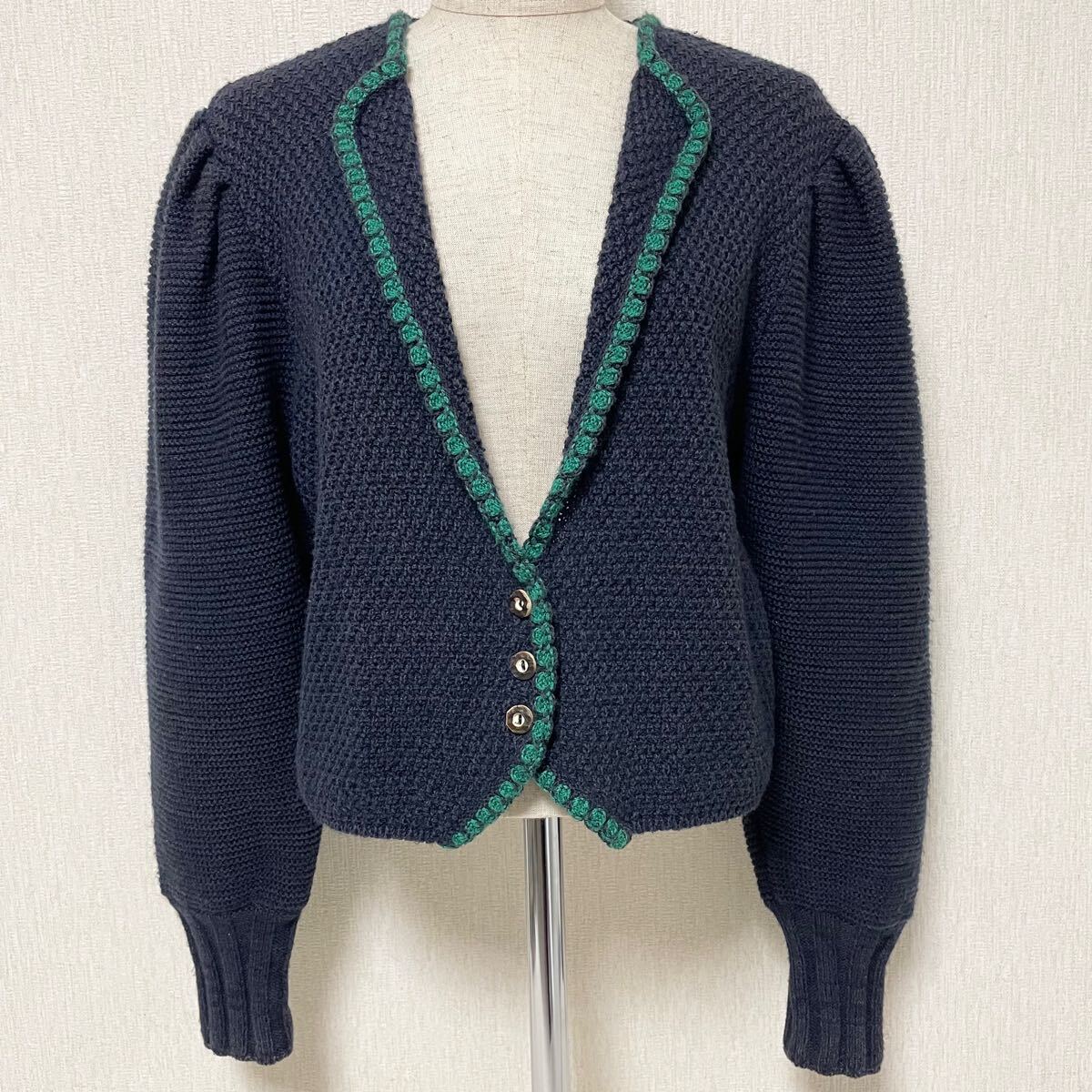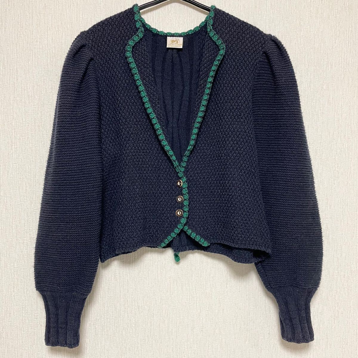 即決☆JULIUS LANG ユリウスラング コットン ウール ニット カーディガン 42 美品 M ボリューム袖