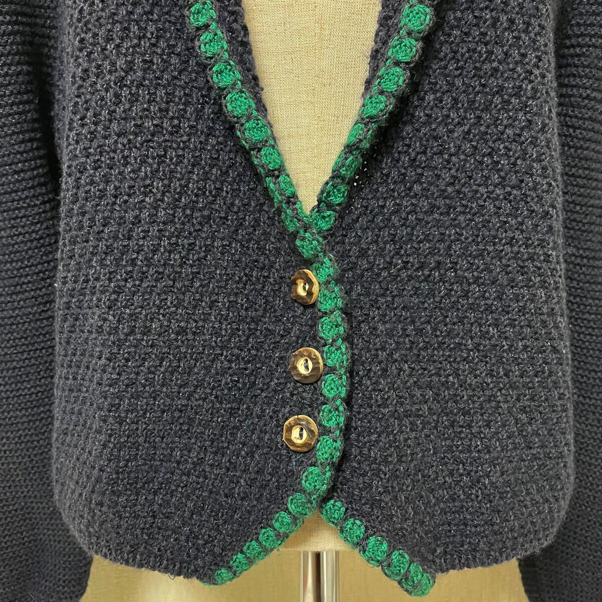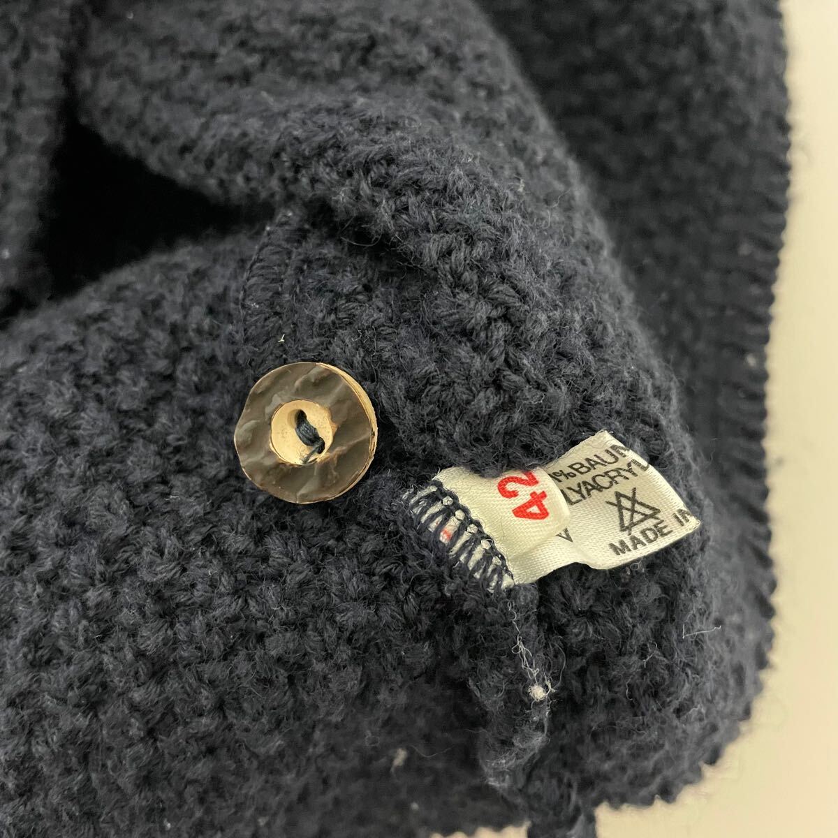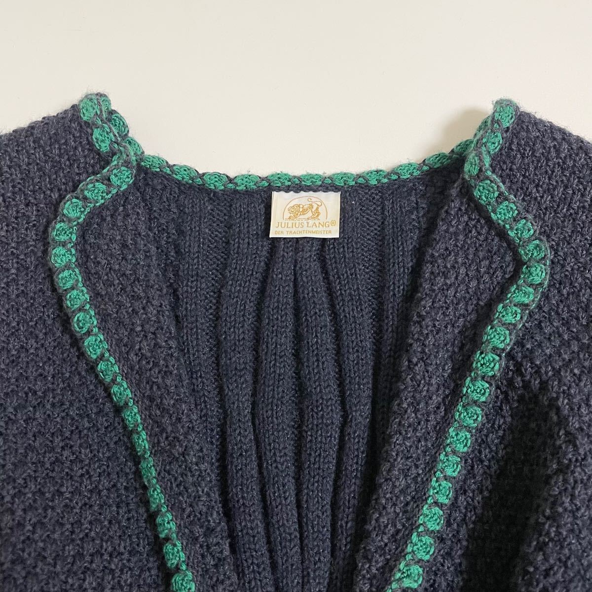 即決☆JULIUS LANG ユリウスラング コットン ウール ニット カーディガン 42 美品 M ボリューム袖