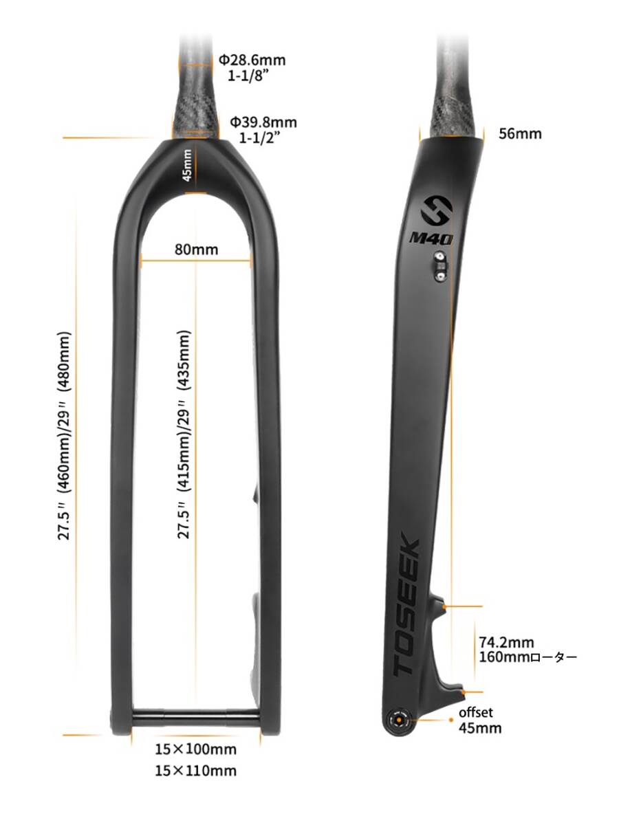 TOSEEKフォーク マウンテンバイクフォーク スルーアクスル BOOSTカーボンフォーク ディスクフォーク テーパード 15*100/110 TKF322