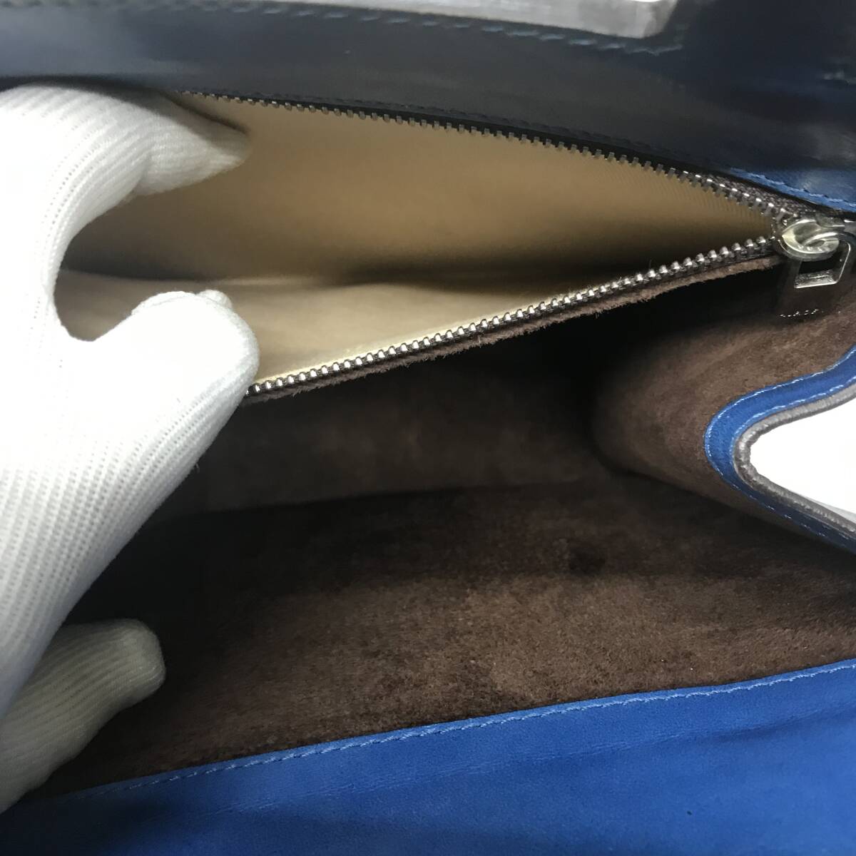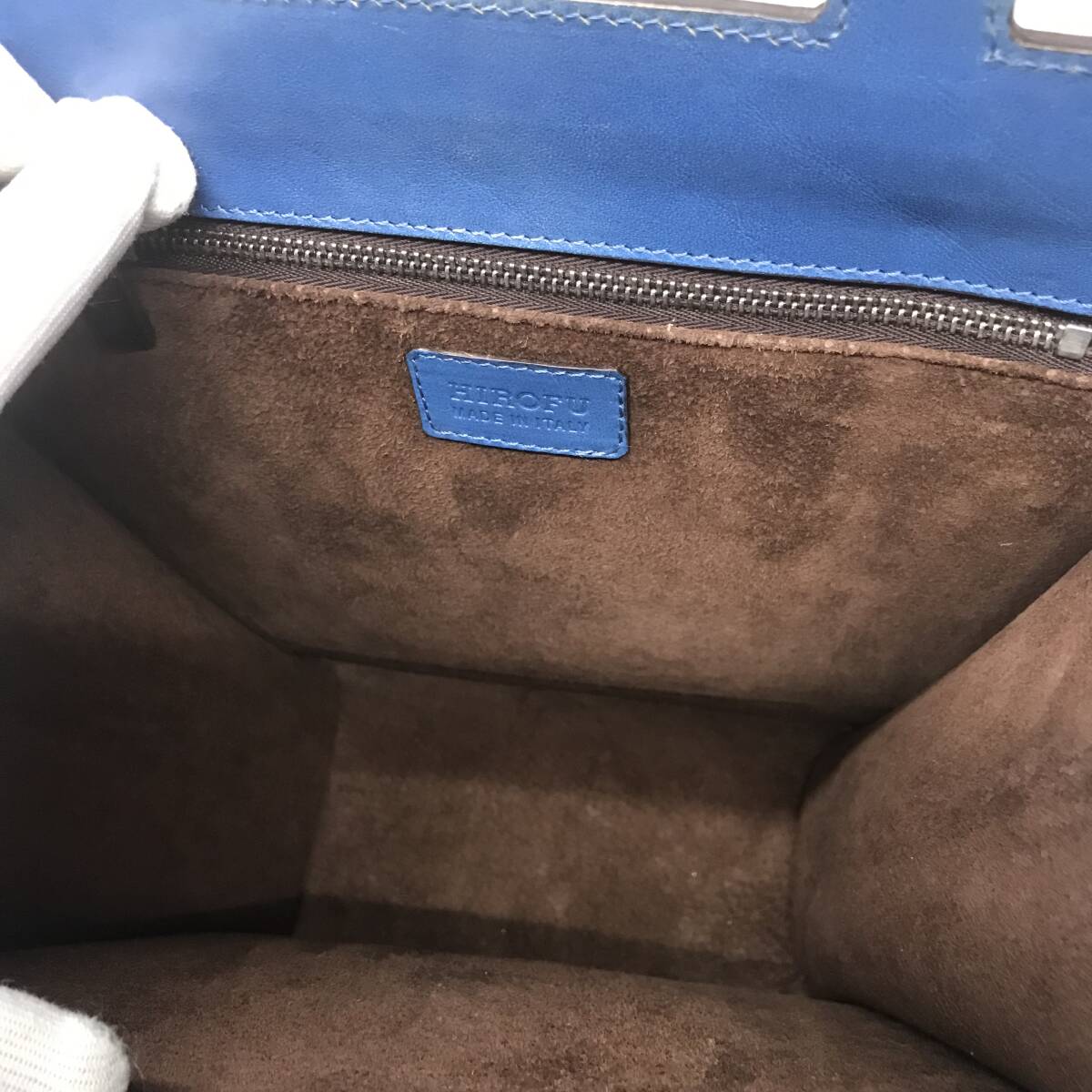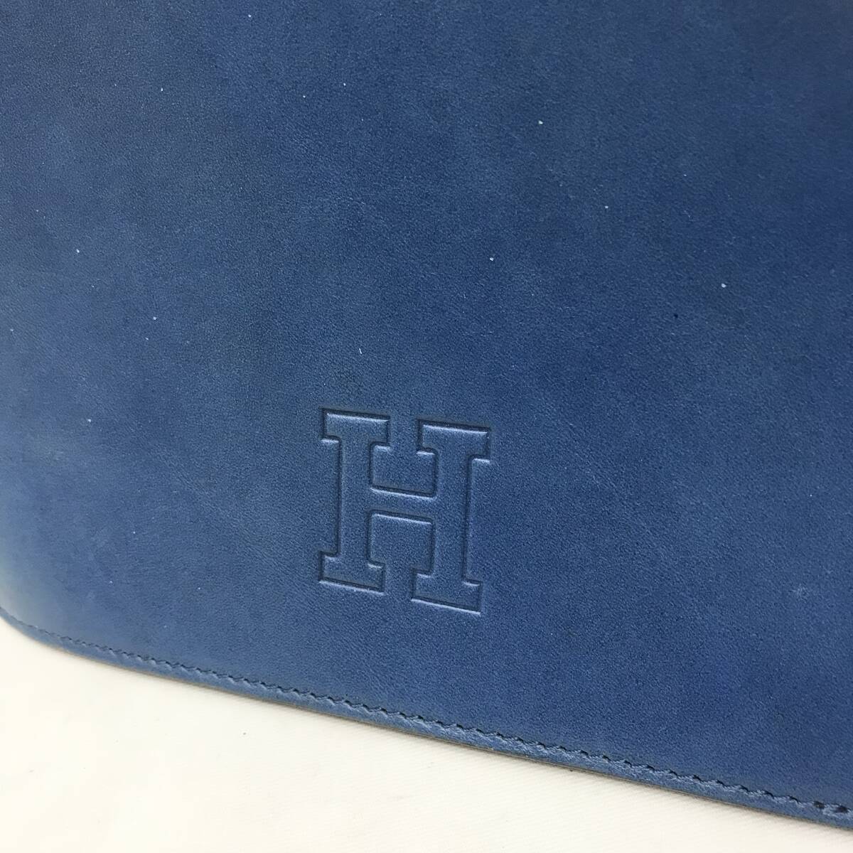 【美品】レア】ヒロフ 三角形 長方形 縦長 ハンドバッグ かっちりレザー 革 青 ブルー トートバッグ
