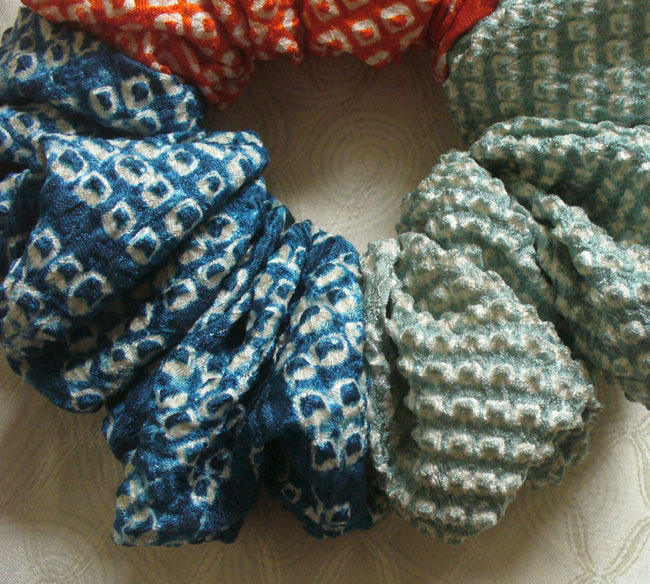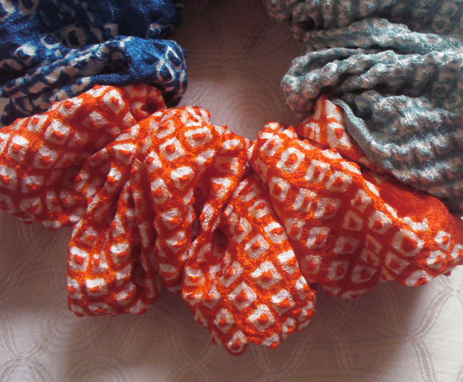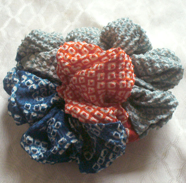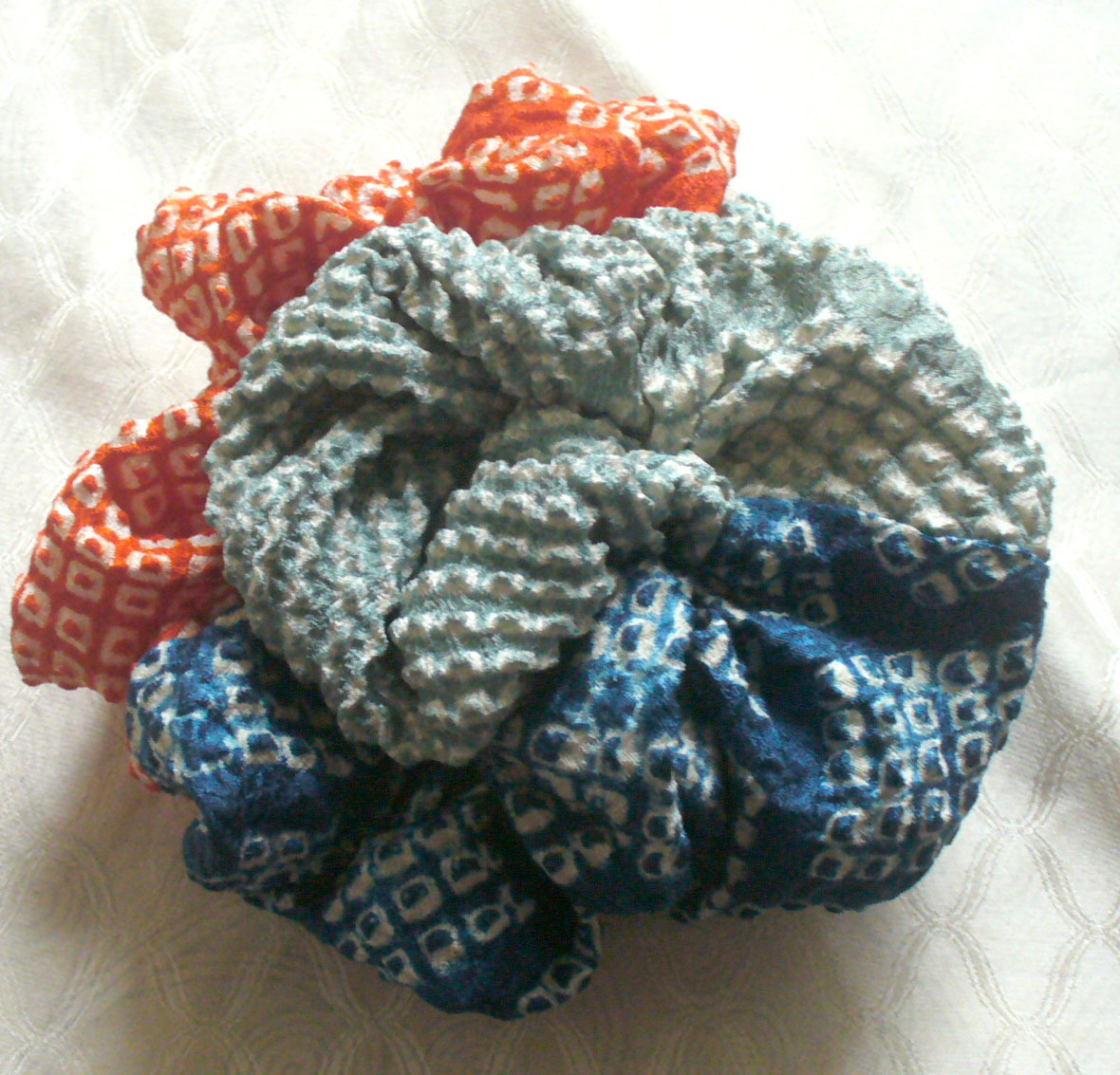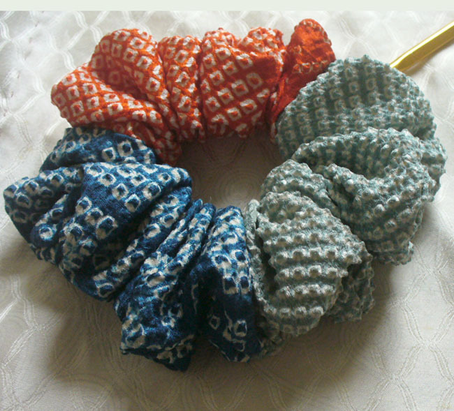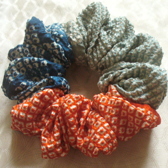 ゴム交換可能 総絞り鹿の子 不思議色3種 フリル シュシュ 着物リメイク シルク 和柄 手縫い ハンドメイド リメイク 着物 和物
