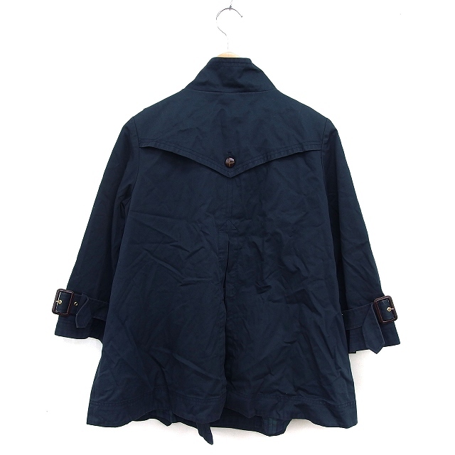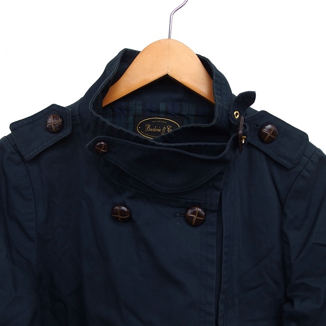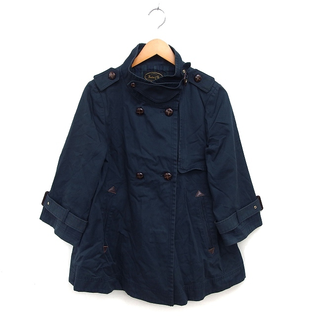ブロードゥリー&コー Broderie&Co ナノユニバース トレンチ コート アウター ショート ダブル ワイド コットン 綿 38 紺 ネイビー