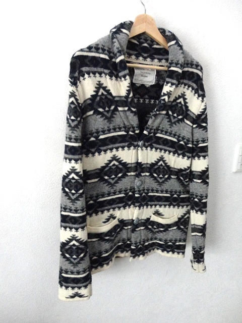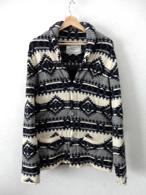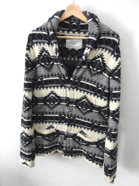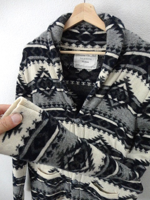 オルテガ ネイティブ柄 コンチョボタン ショールカラー ニット カーディガン/ガウン