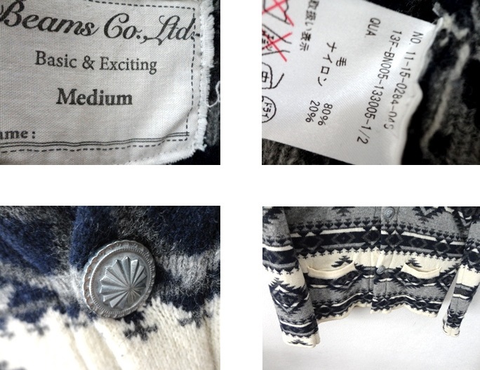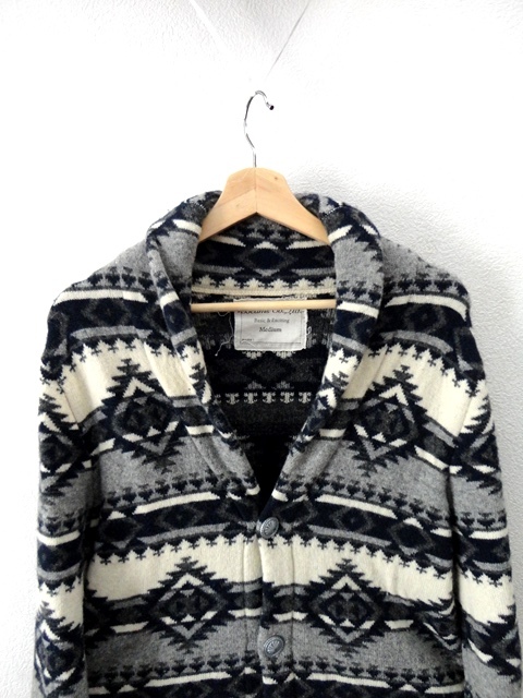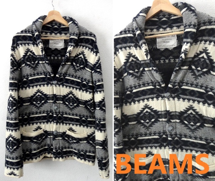BEAMS:ビームス オルテガ ネイティブ柄 コンチョボタン ショールカラー ニット カーディガン/ガウン ジャケット/グレー系/Msize
