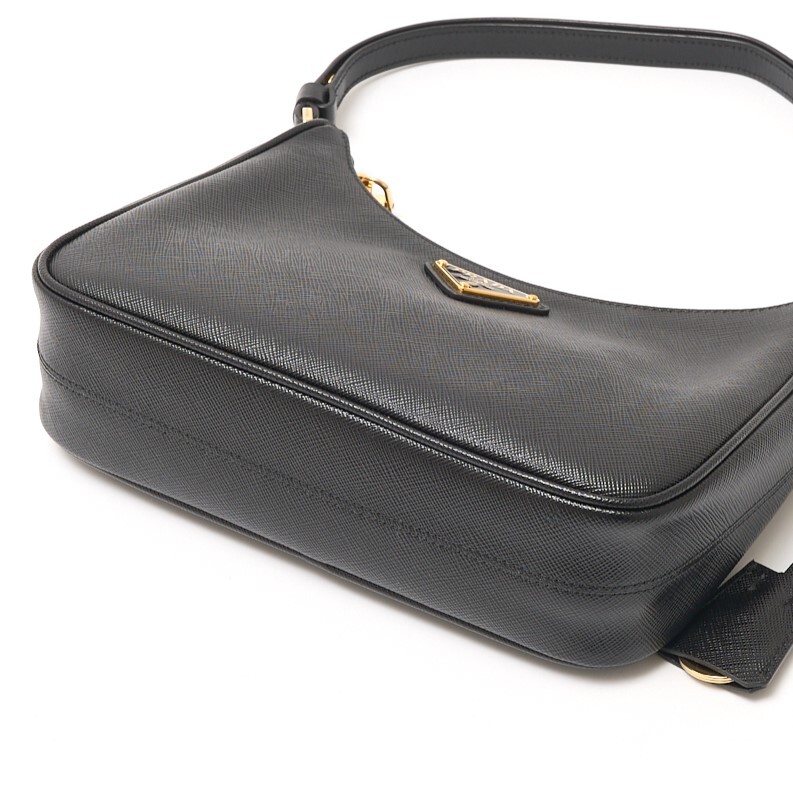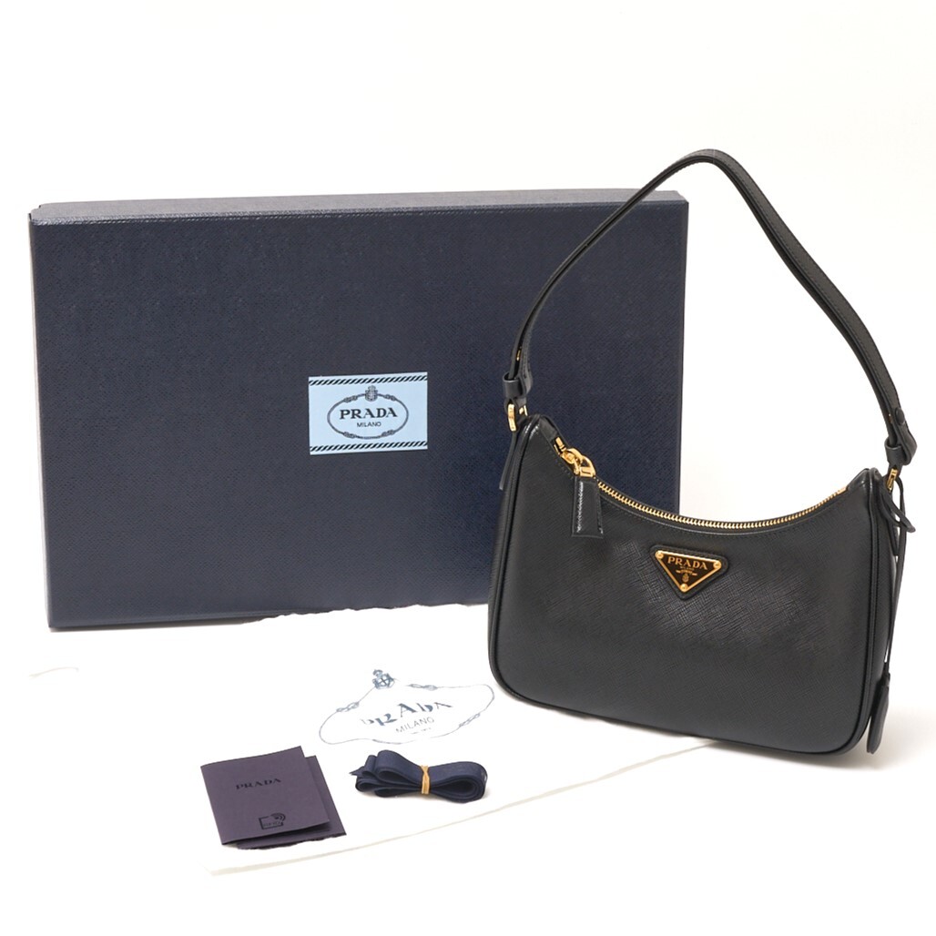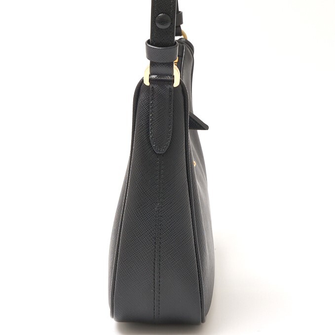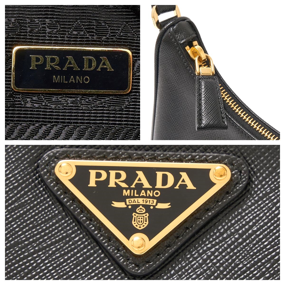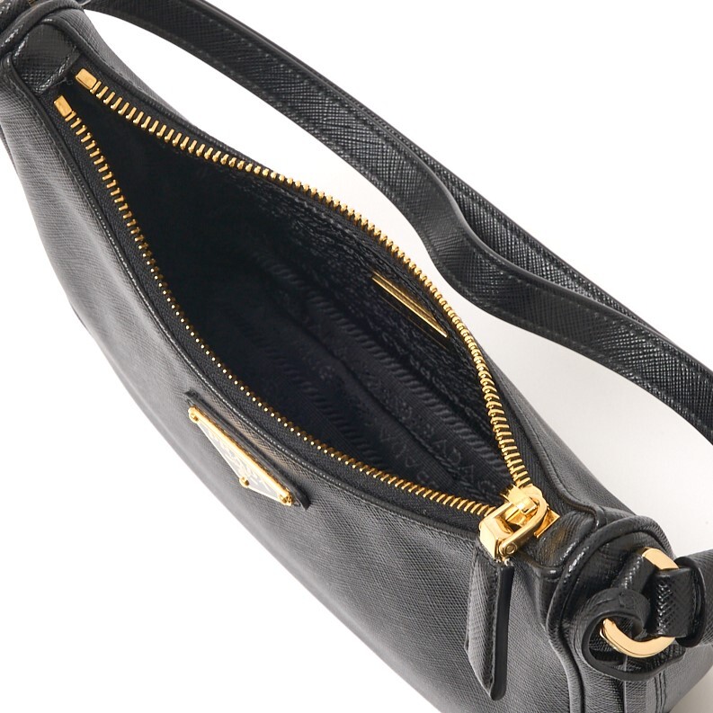 PRADA プラダ サフィアーノレザー ミニバッグ 1BC204 コンパクト 2WAY ショルダー ハンドBAG ブラック×ゴールド シンプル レディース