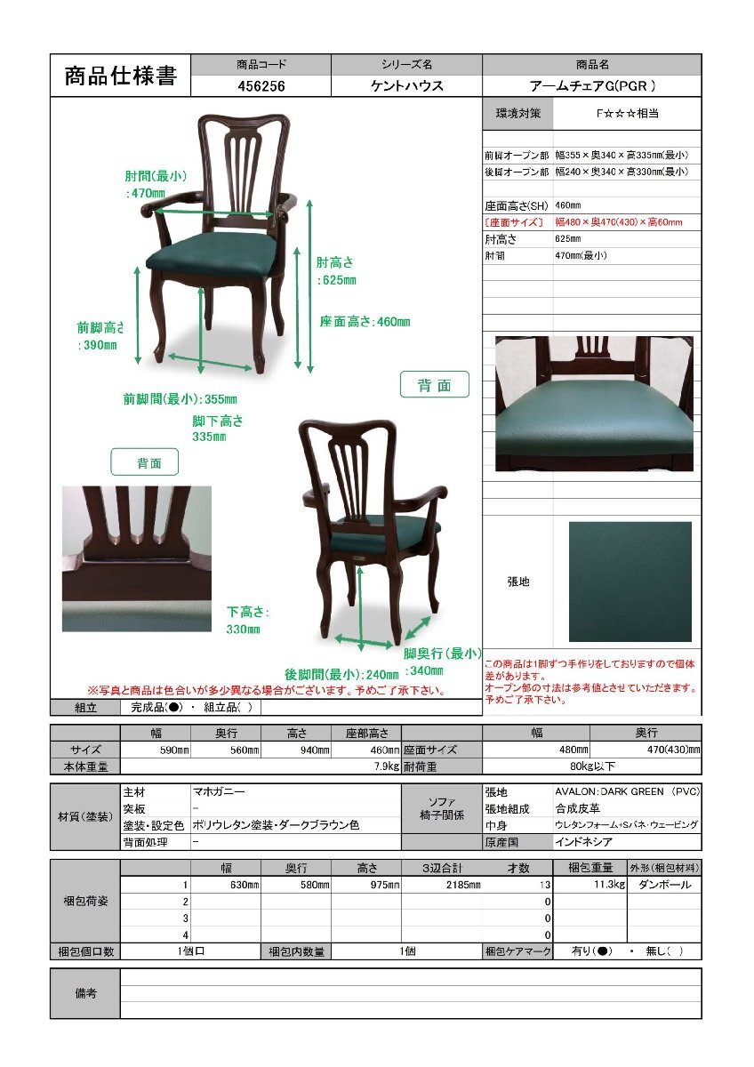 ケントハウス アームチェアG(PGR)