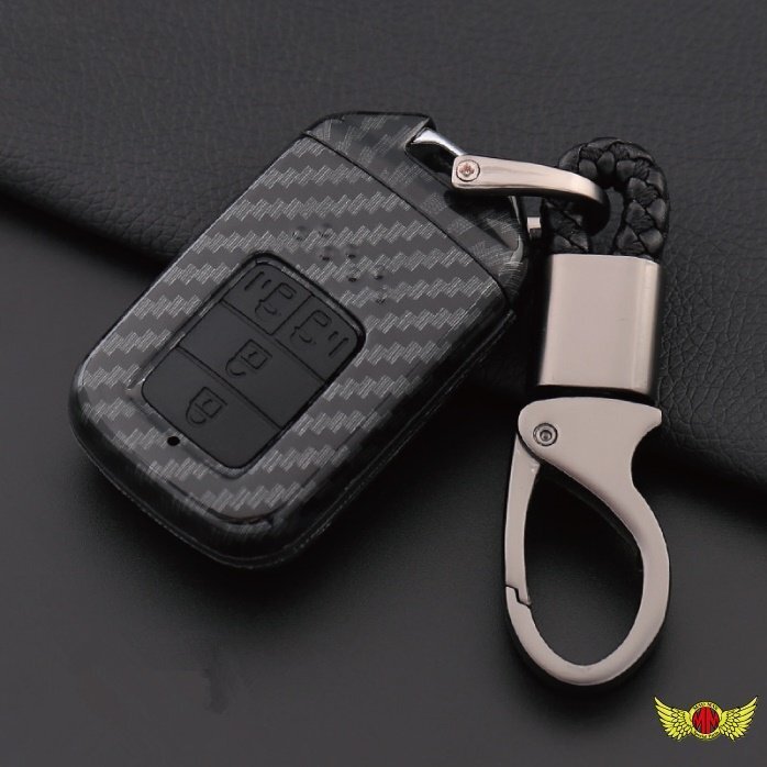 ホンダ車専用 カーボン調 スマートキーケース オデッセイ/フリード 4ボタン式 TYPE5 キーホルダー付き ブラック
