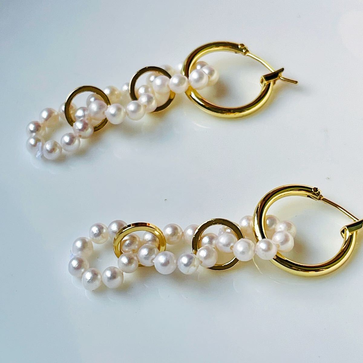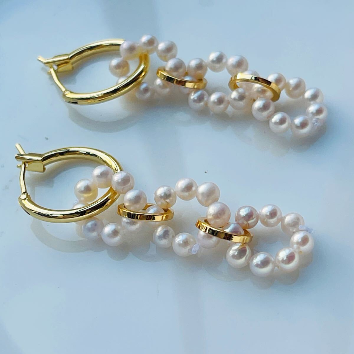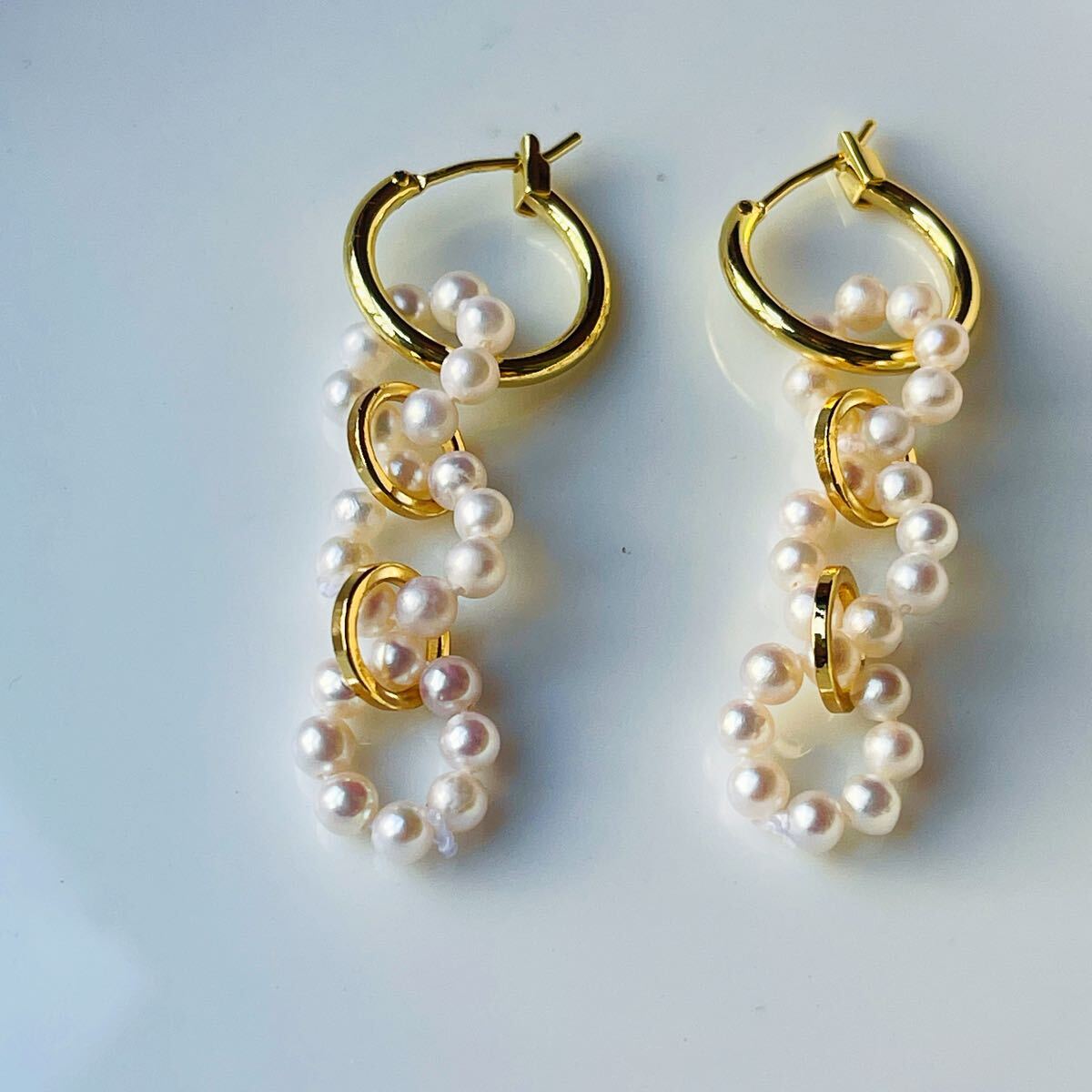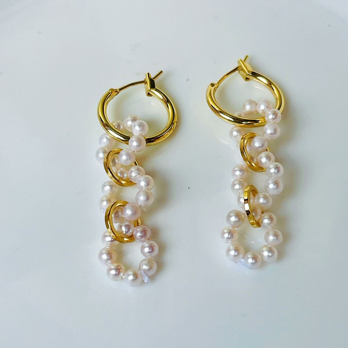 フレンチヴィンテージ風デザインの真珠3連リングイヤリングは、エレガンスとノスタルジックな雰囲気を兼ね備えた逸品です。滑らかな真珠の輝きが顔周りを洗練された印象に導き、どの角度から見ても美しいバランス。特別な日の裝いにも、日常のアクセントにもぴったりな一品です。